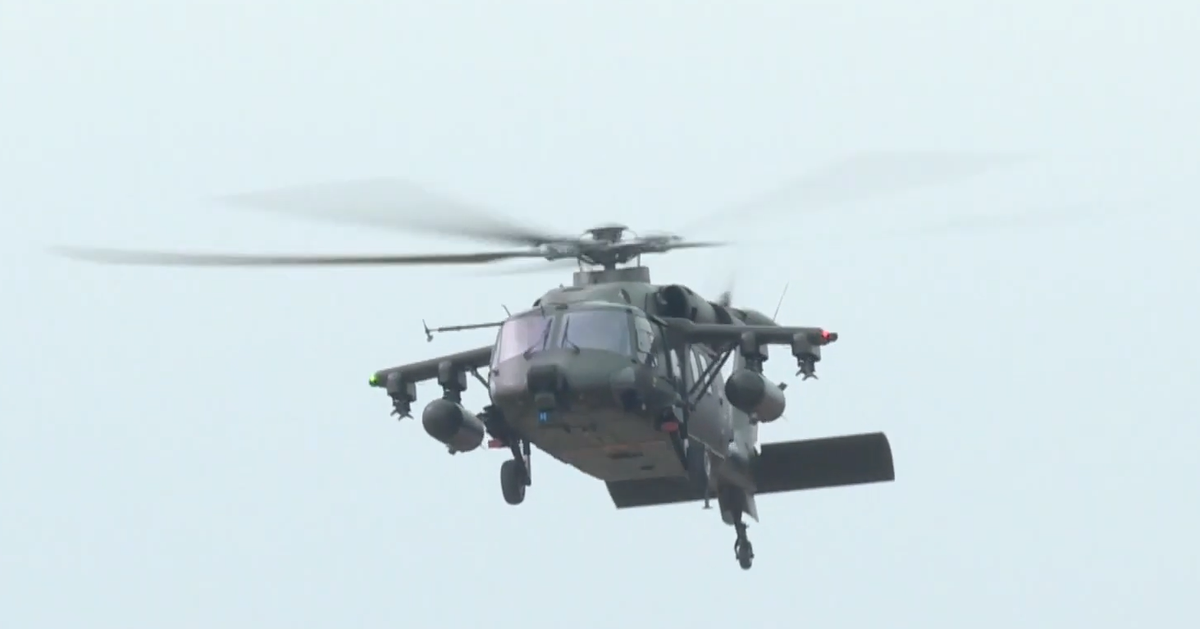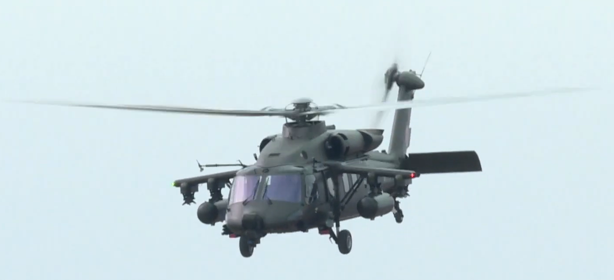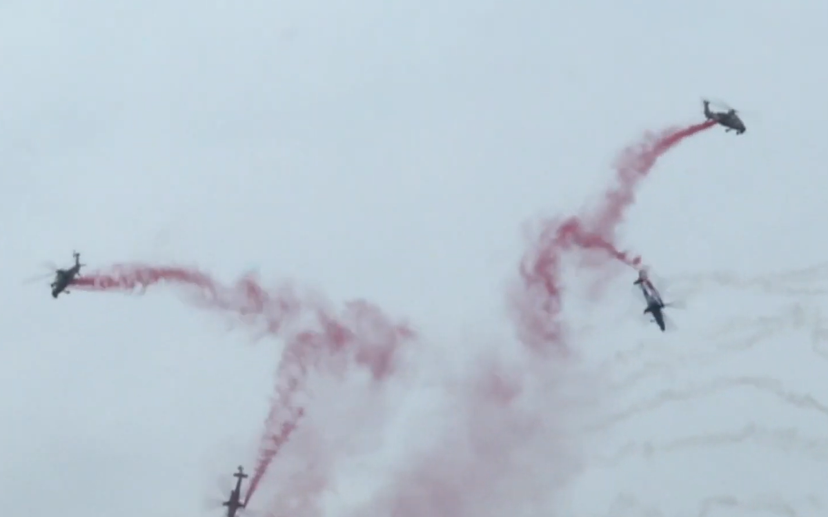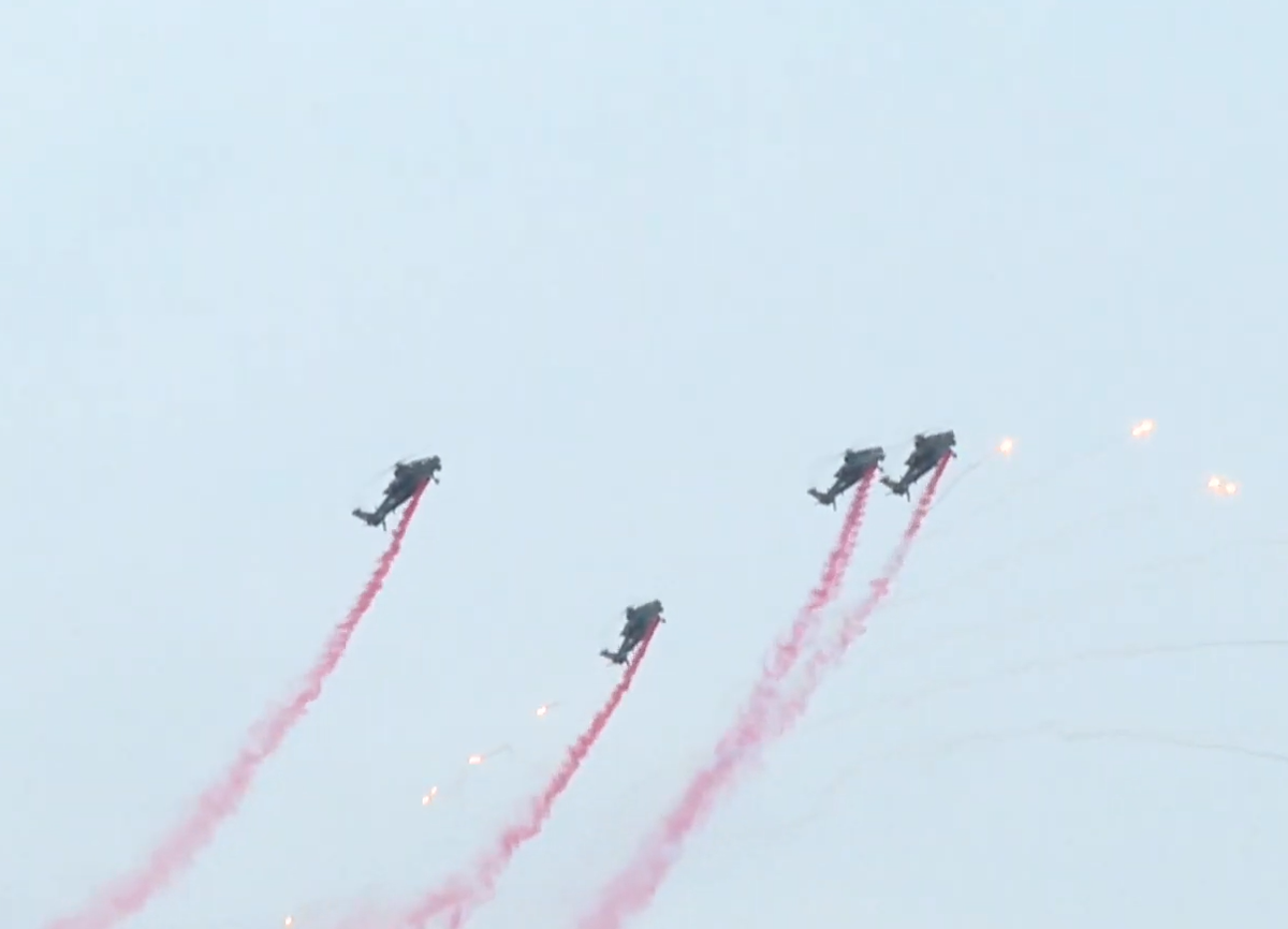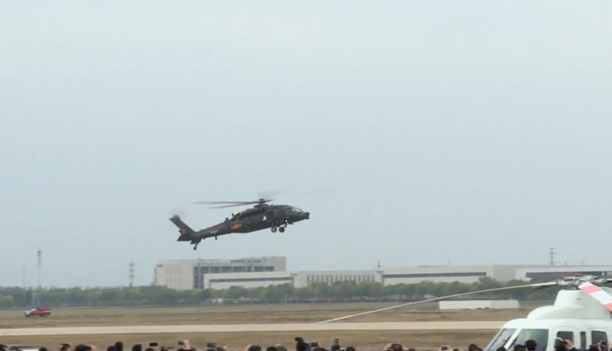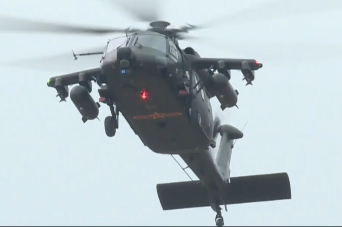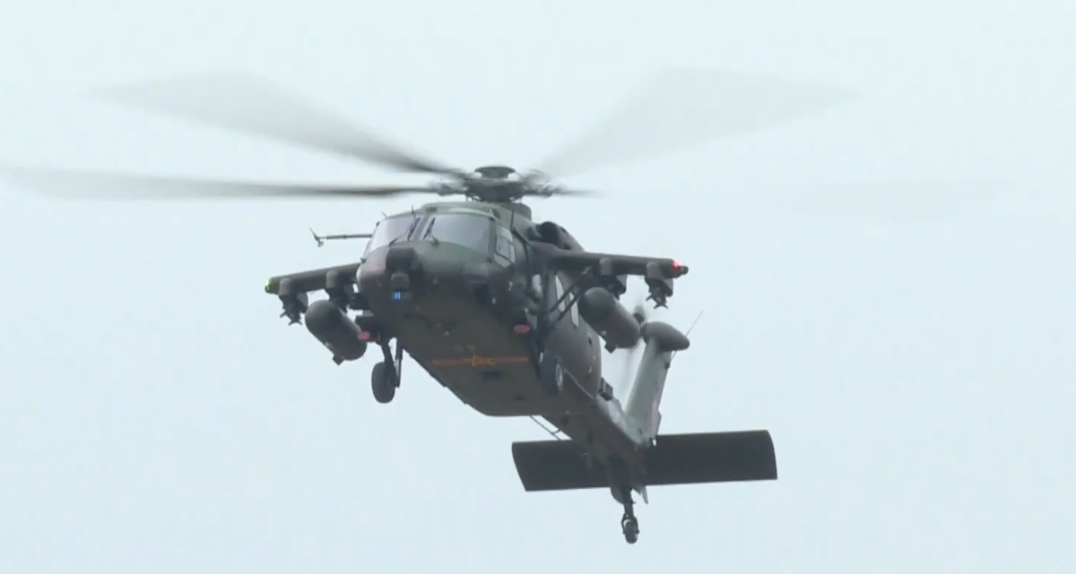Được phát triển bởi Tập đoàn Công nghiệp Hàng không Trung Quốc (AVIC), trực thăng tấn công Z-20T đã chứng minh khả năng cơ động tiên tiến, và tích hợp hỏa lực trong các màn trình diễn bay trực tiếp. Ảnh: @AVIC.