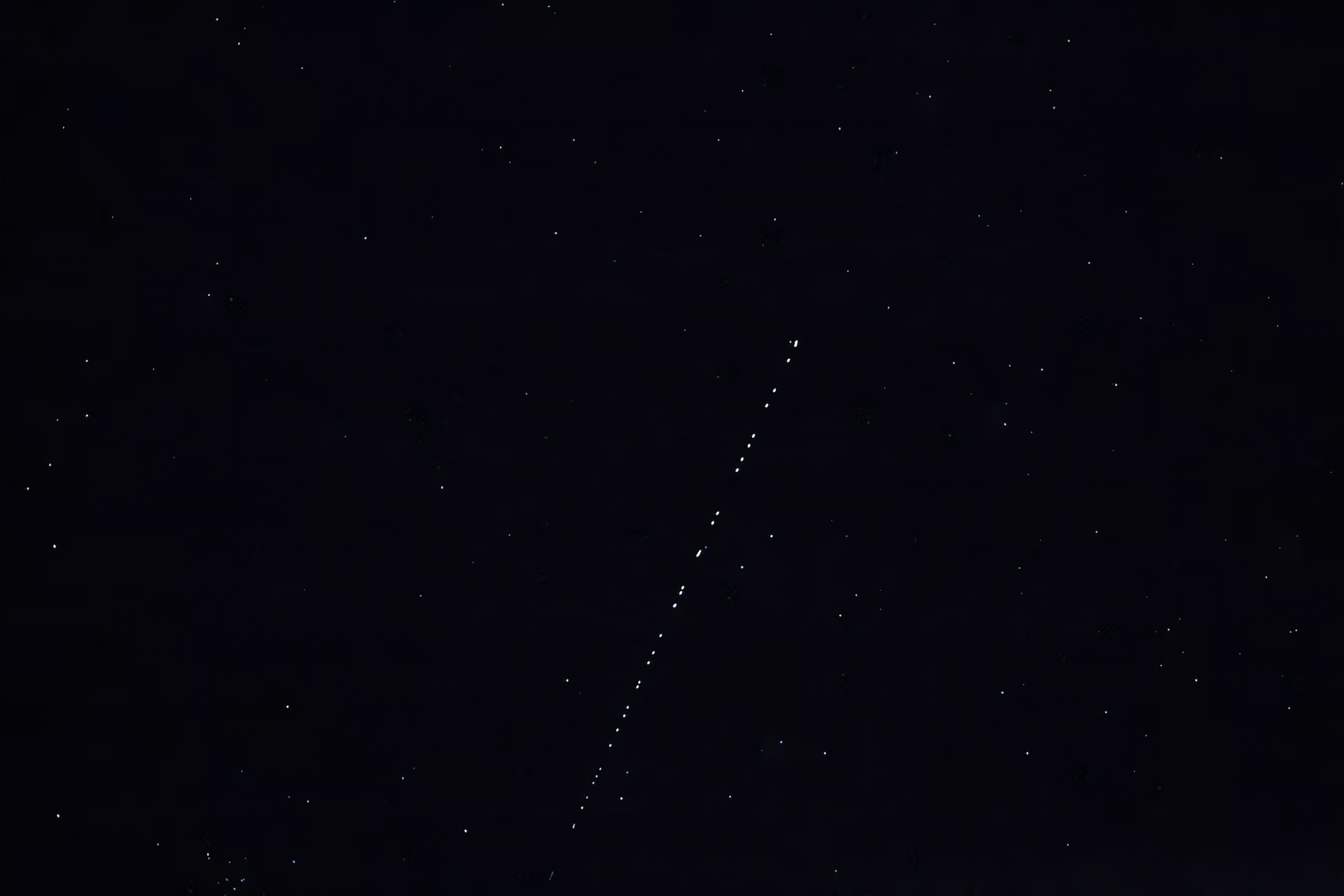 Một chuỗi vệ tinh liên lạc Starlink đã xuất hiện như một dải ánh sáng duy nhất lướt ngang bầu trời. (Nguồn: Reuters)