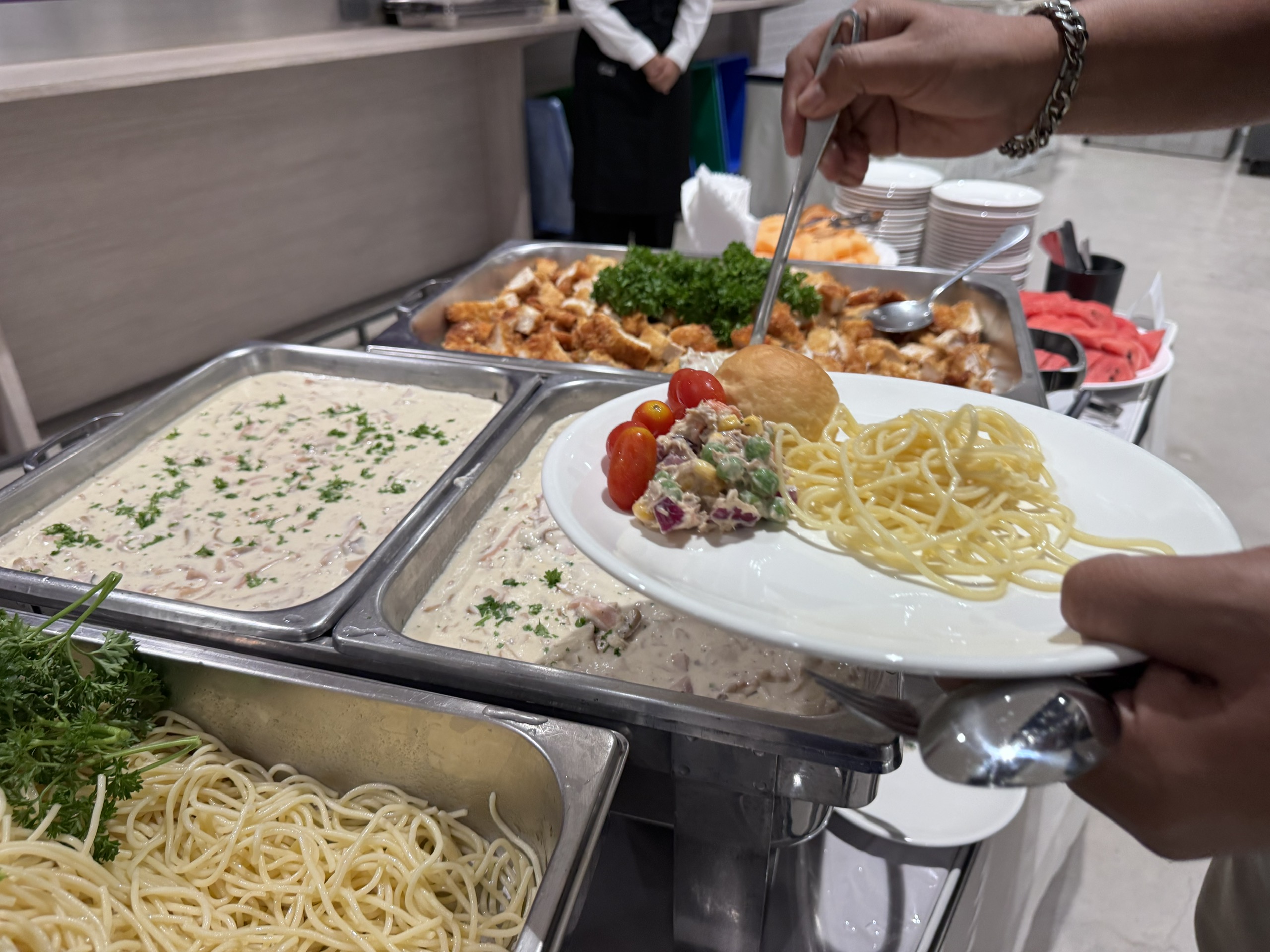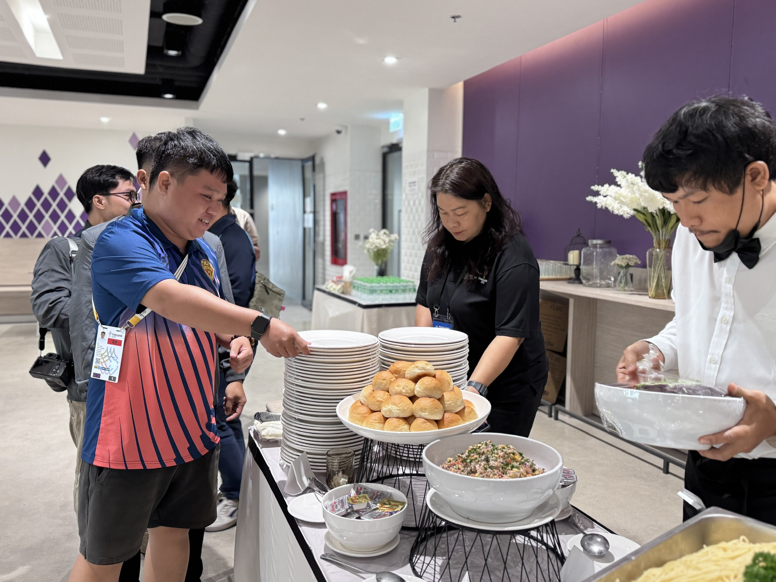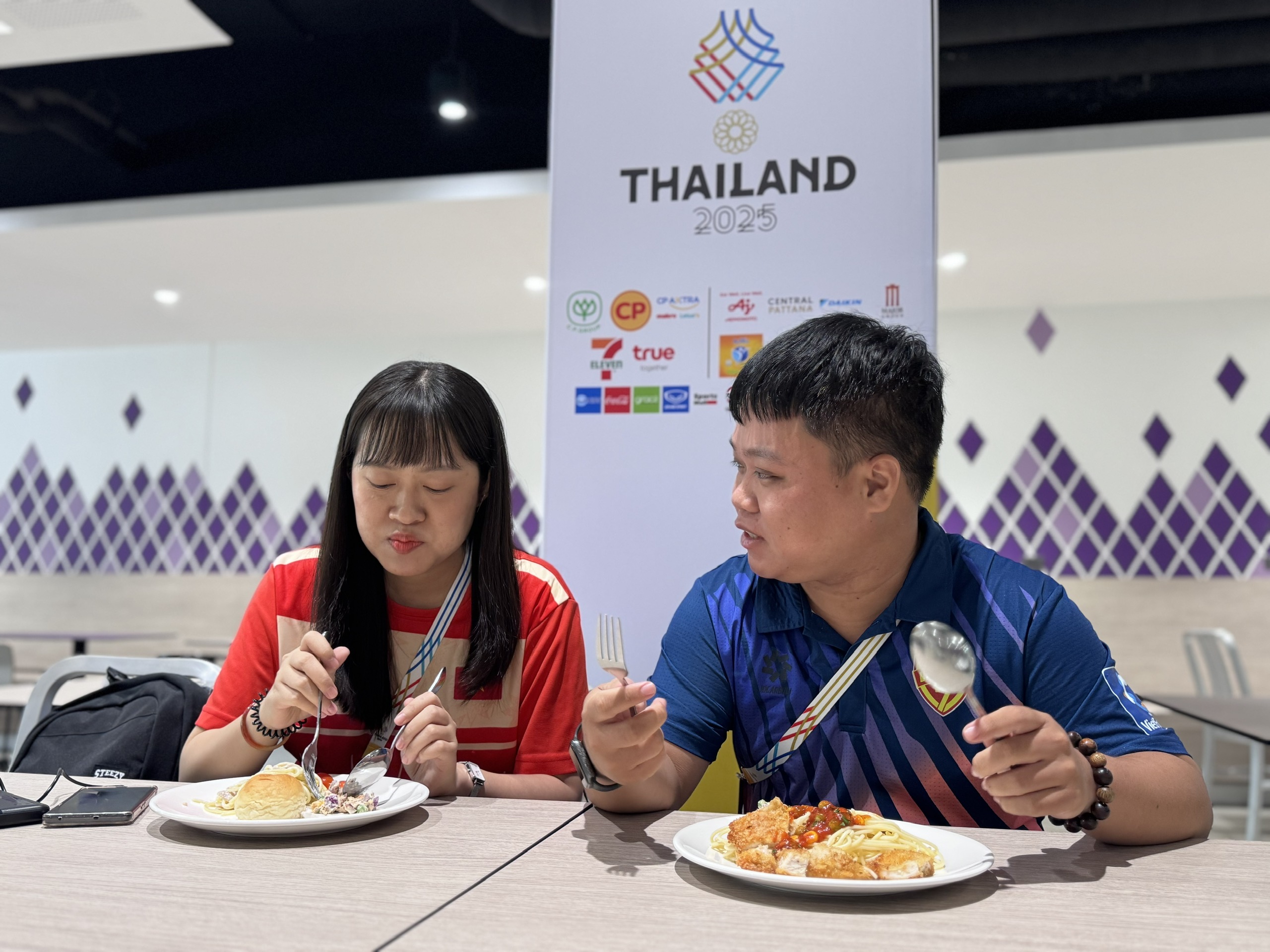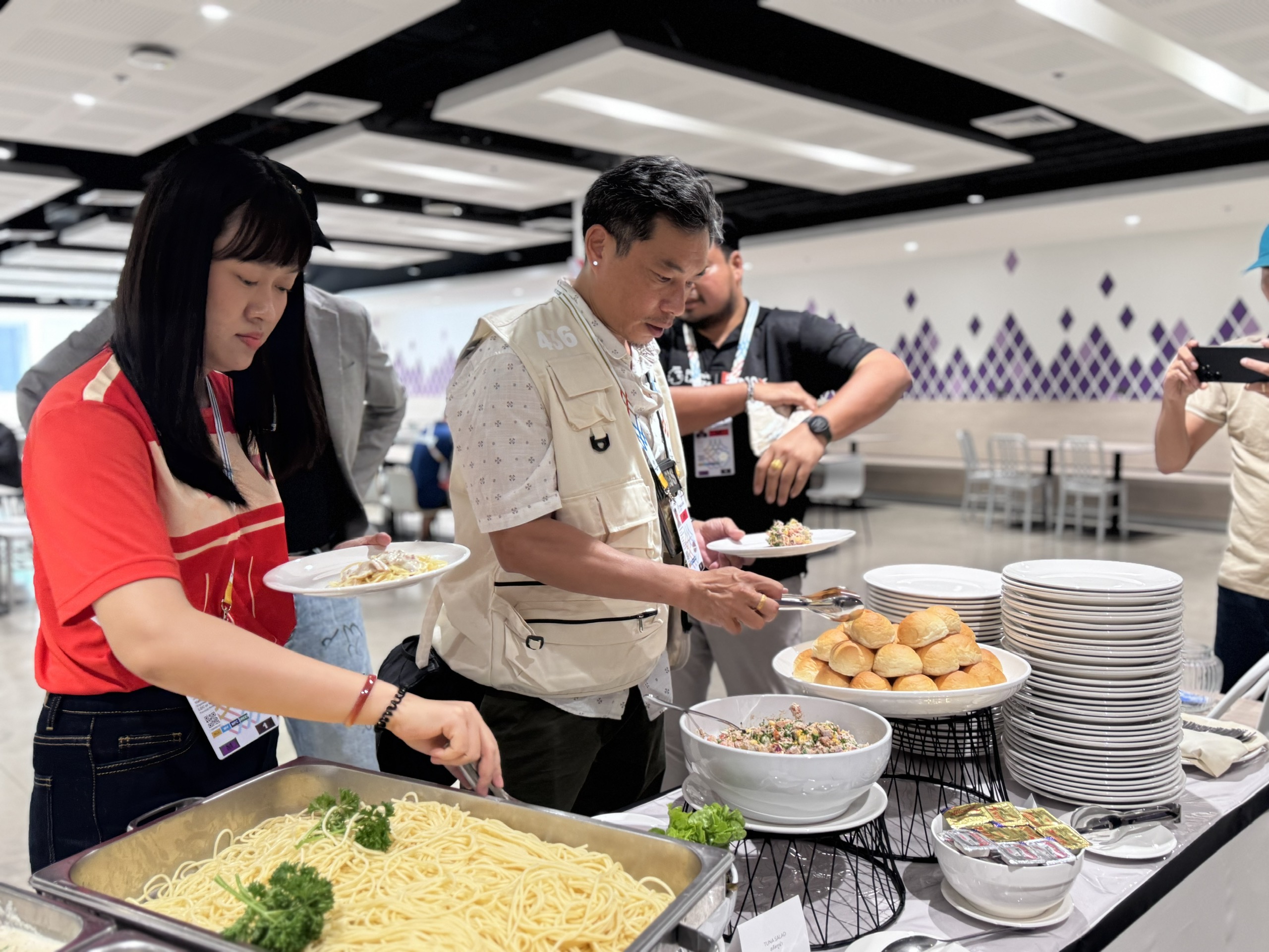 Điểm đáng chú ý, Ban tổ chức bố trí quầy buffet phục vụ miễn phí các món ăn nhẹ cho phóng viên. Riêng bữa trưa được cung cấp tại căn tin từ 11 giờ 30 đến 14 giờ 30 mỗi ngày, giúp các đoàn báo chí có thêm năng lượng trong quá trình làm việc cường độ cao.