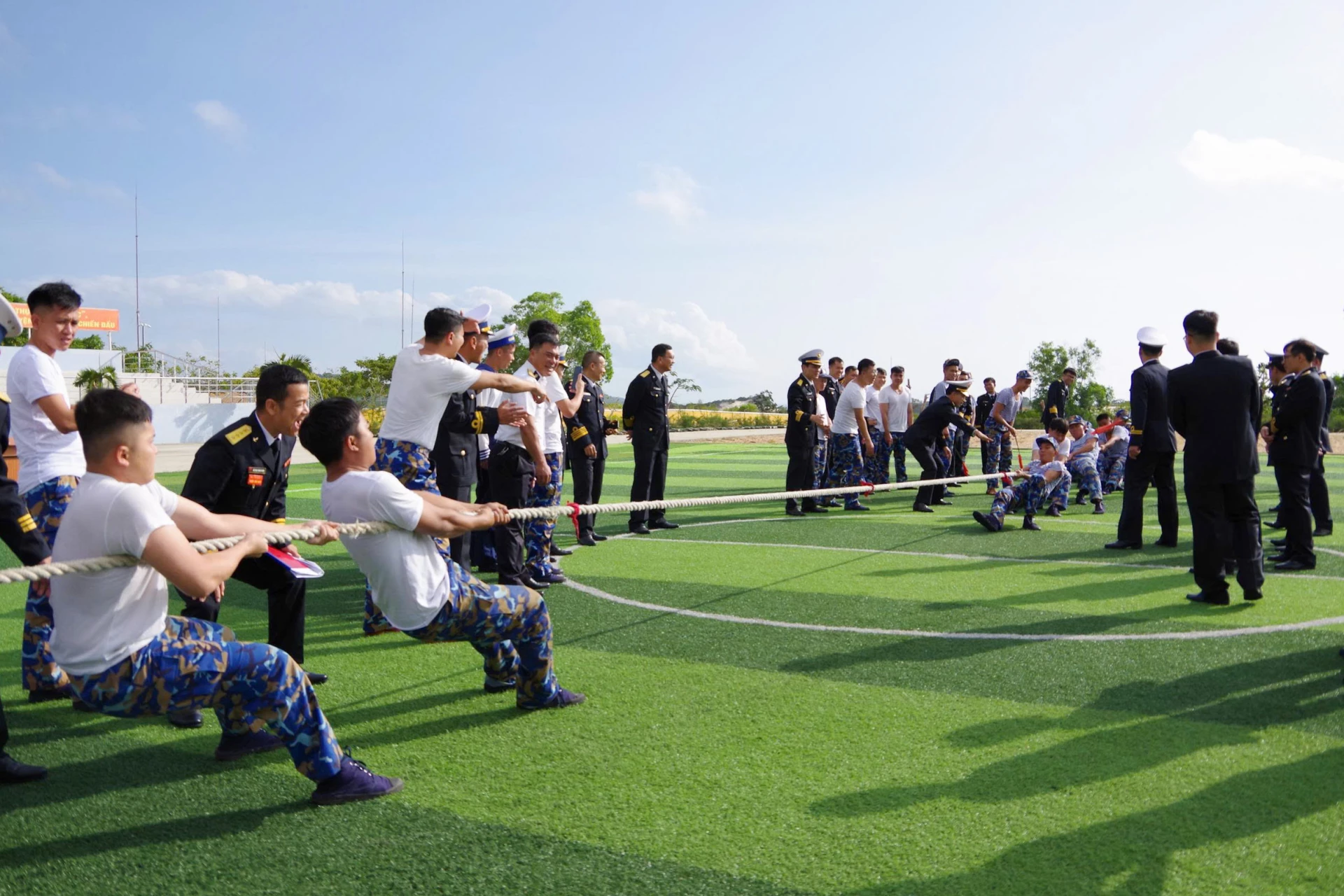 Cán bộ, chiến sĩ trung tâm thi kéo co.
