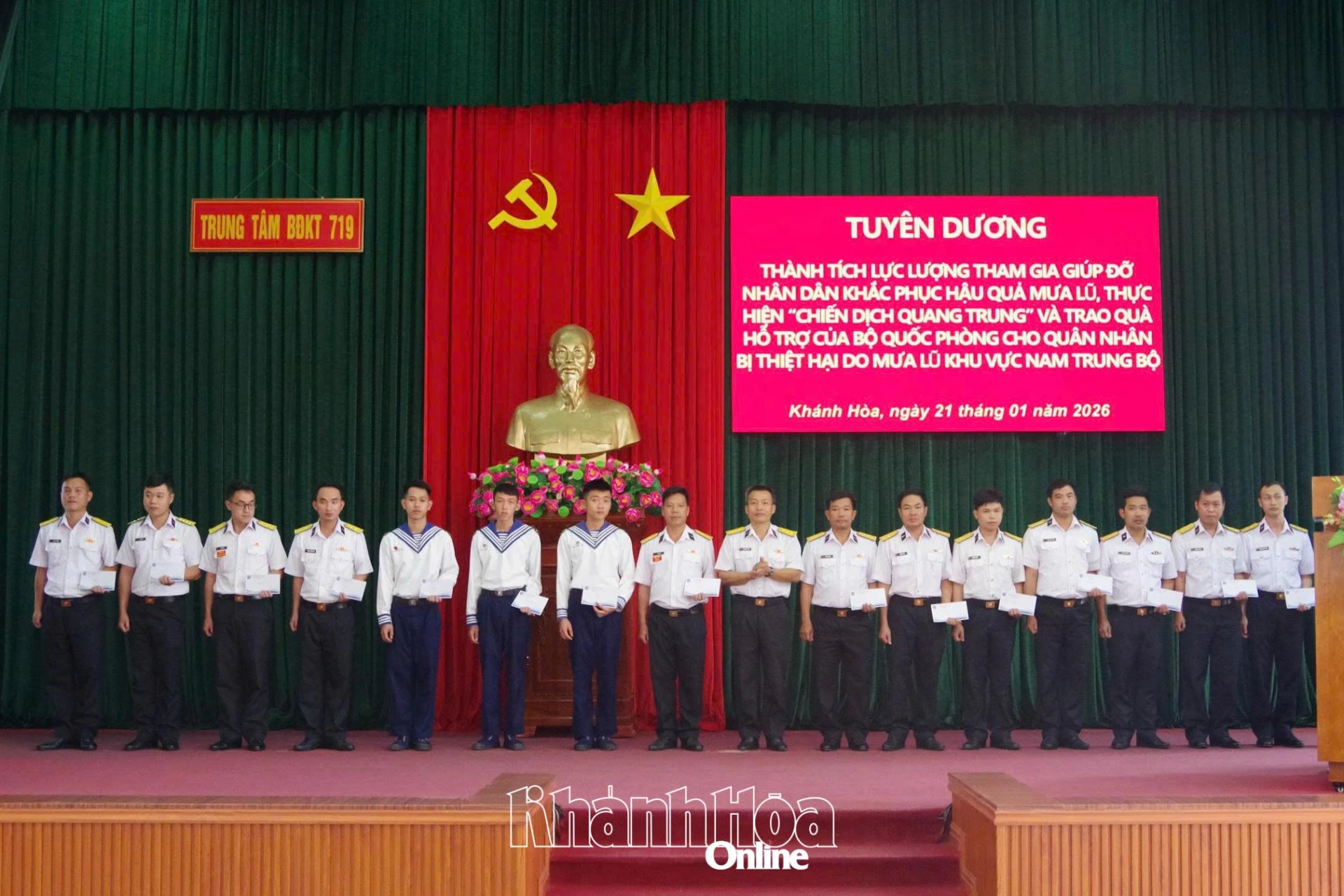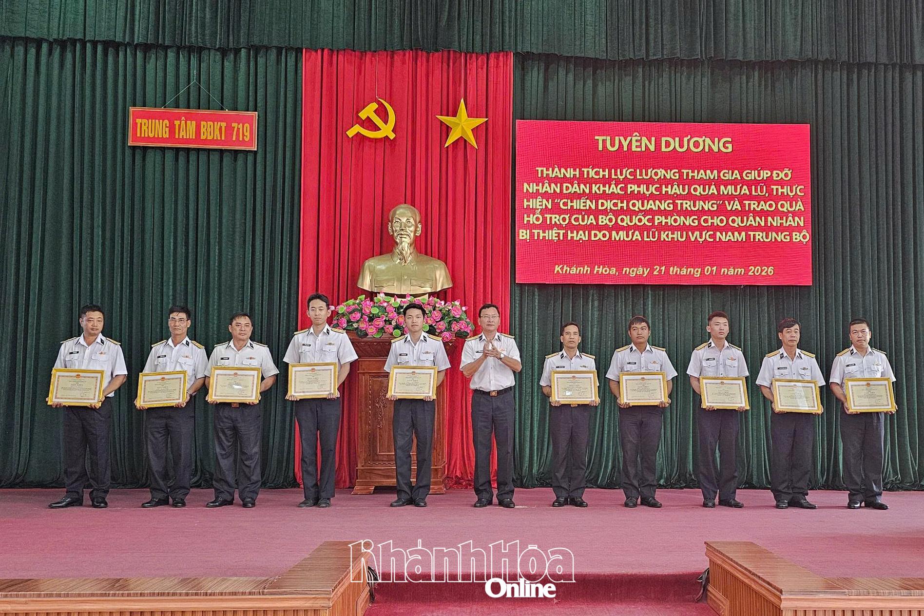 Chiều 21-1, Trung tâm Bảo đảm Kỹ thuật 719, Vùng 4 Hải quân tổ chức gặp mặt, tuyên dương lực lượng tham gia giúp đỡ Nhân dân khắc phục hậu quả mưa lũ, thực hiện “Chiến dịch Quang Trung” và trao quà hỗ trợ của Bộ Quốc phòng cho quân nhân bị thiệt hại do mưa lũ.