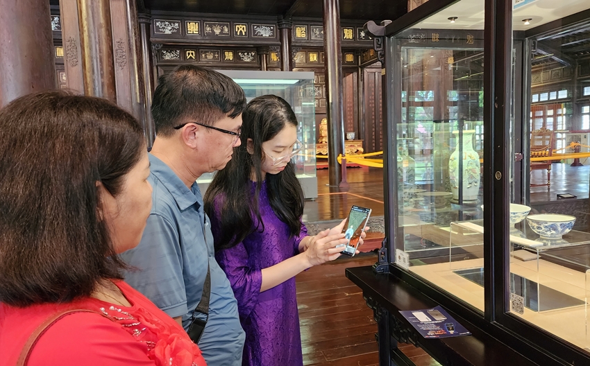 Hướng dẫn du khách tương tác với chip NFC Nomion gắn trên cổ vật tại Bảo tàng Cổ vật Cung đình Huế