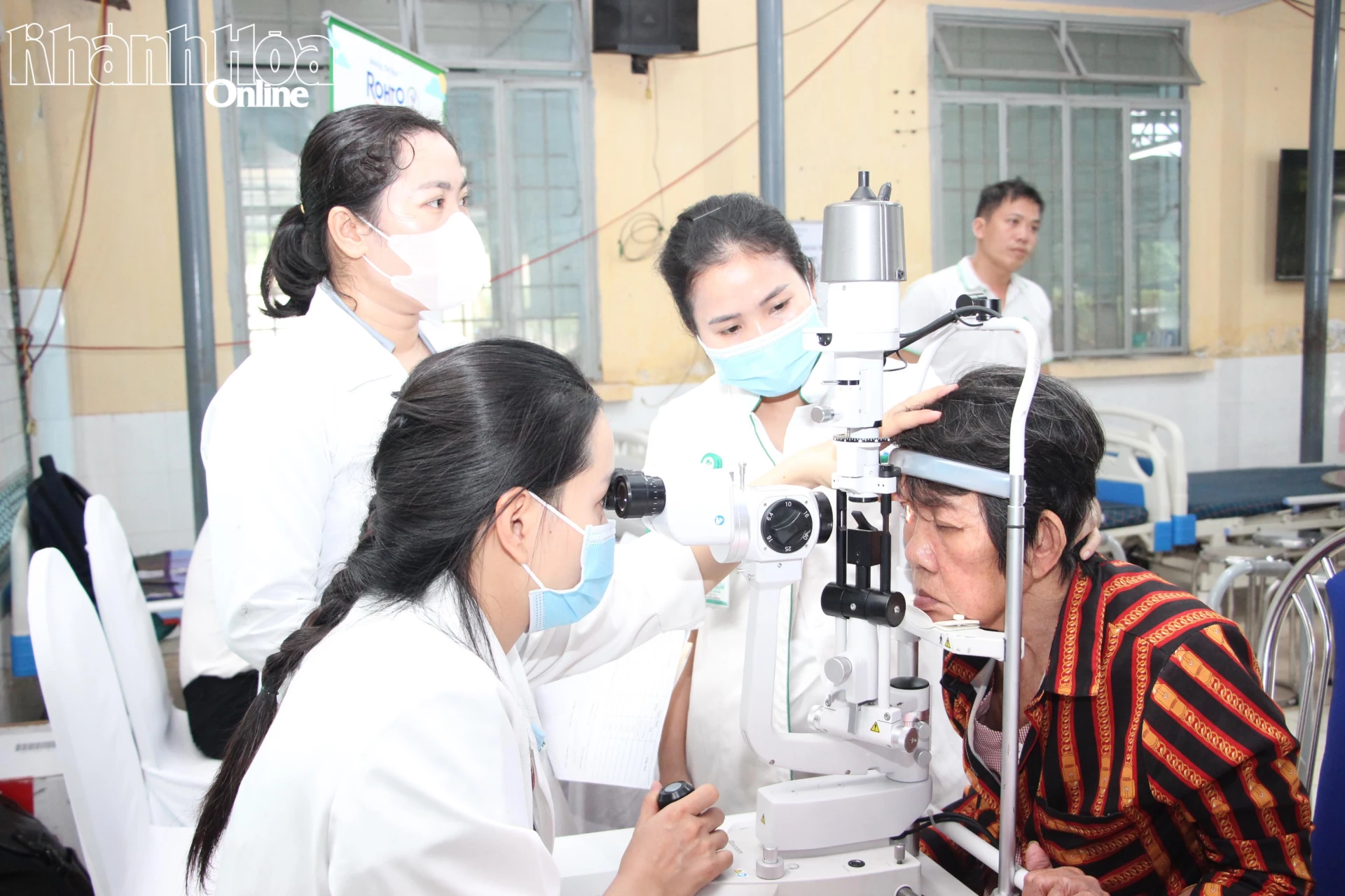 Kiểm tra các bệnh về mắt cho người cao tuổi tại trung tâm.
