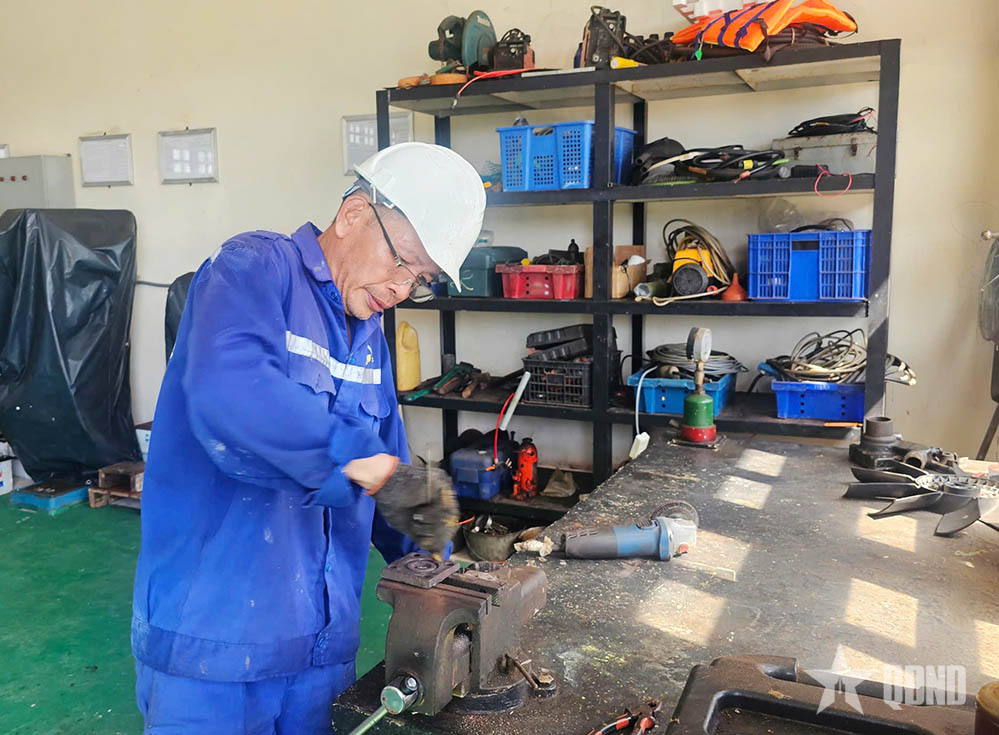 Đến 15 giờ 30 phút cùng ngày, công tác sửa chữa mặt bích và thay mới đoạn ống hư hỏng đã hoàn tất, tổ kỹ thuật mang trang bị xuống tàu cá lắp đặt lại và thử tải hoạt động ổn định.