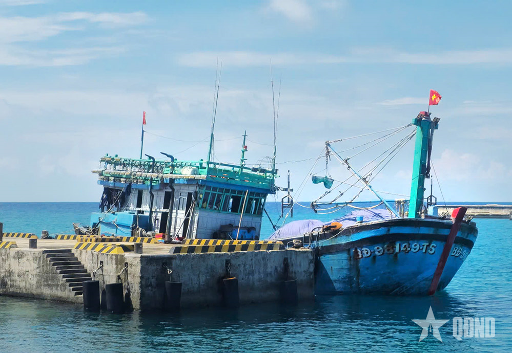 Tàu cá vào neo đậu tại âu tàu đảo Trường Sa.