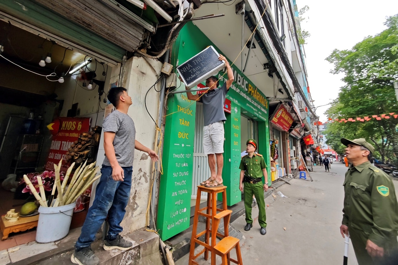 Chiều 1/4, tại ngõ 1194 đường Láng, nhiều hộ kinh doanh đã chủ động tháo dỡ biển quảng cáo, mái che, mái vẩy lấn chiếm vỉa hè. Đây là minh chứng cho hiệu quả kết hợp giữa xử lý vi phạm và tuyên truyền trực quan, đồng thời phản ánh sự chuyển biến trong nhận thức khi các biện pháp quản lý được triển khai đồng bộ, quyết liệt.