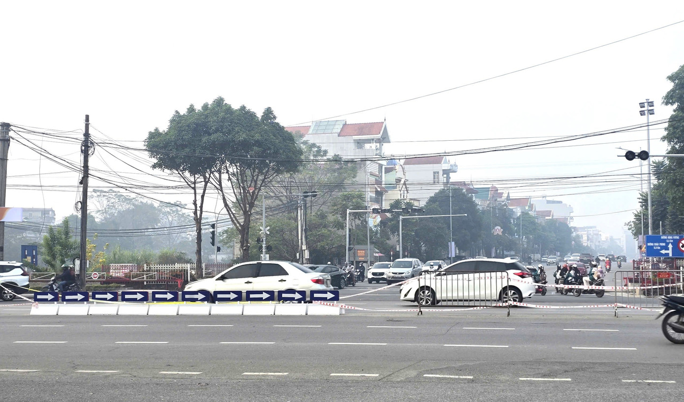 Ngã tư đường Quang Trung - Nguyễn Tất Thành đã được lực lượng chức năng rào chắn, tổ chức lại giao thông.