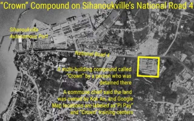 Ngay dưới tuyến Quốc lộ 4 nối liền thủ đô Phnom Penh với vùng biển phía Nam, tồn tại một khu giam giữ quy mô lớn bị cáo buộc là trung tâm lừa đảo qua giọng nói. Dưới vỏ bọc là doanh nghiệp công nghệ mang tên “Crown High-Tech Industrial Complex”. Ảnh: VOD.