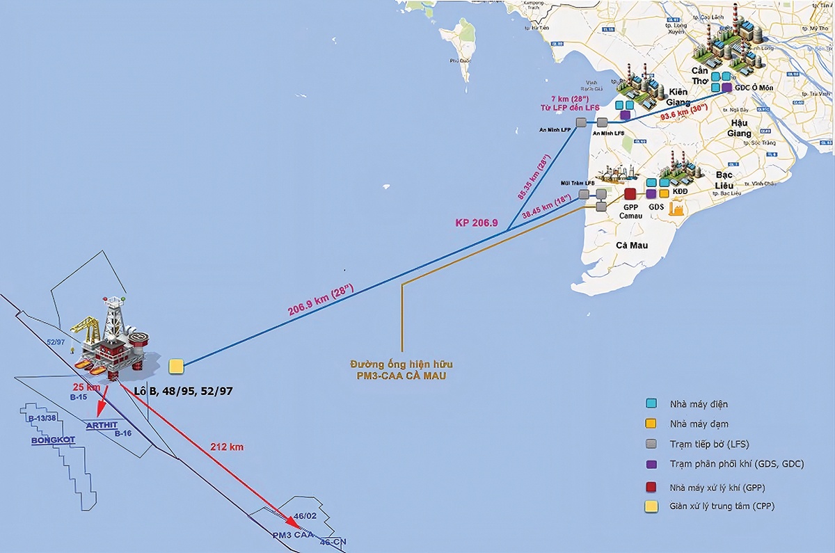 Hiện nay, chuỗi Khí điện Lô B - Ô Môn tiếp tục củng cố cấu trúc năng lượng quốc gia theo hướng liên kết đồng bộ từ thượng nguồn đến hạ nguồn. Khí từ mỏ Lô B ngoài khơi Tây Nam được dẫn qua đường ống dài hơn 400 km vào Cần Thơ, cấp cho cụm nhà máy điện khí với tổng công suất khoảng 3.800 MW. Chuỗi từ khai thác, vận chuyển đến phát điện được thiết kế thống nhất ngay từ đầu, với sự tham gia của nhiều đối tác trong và ngoài nước, qua đó khẳng định năng lực tổ chức hệ thống khí - điện quy mô lớn, liên vùng của Petrovietnam.