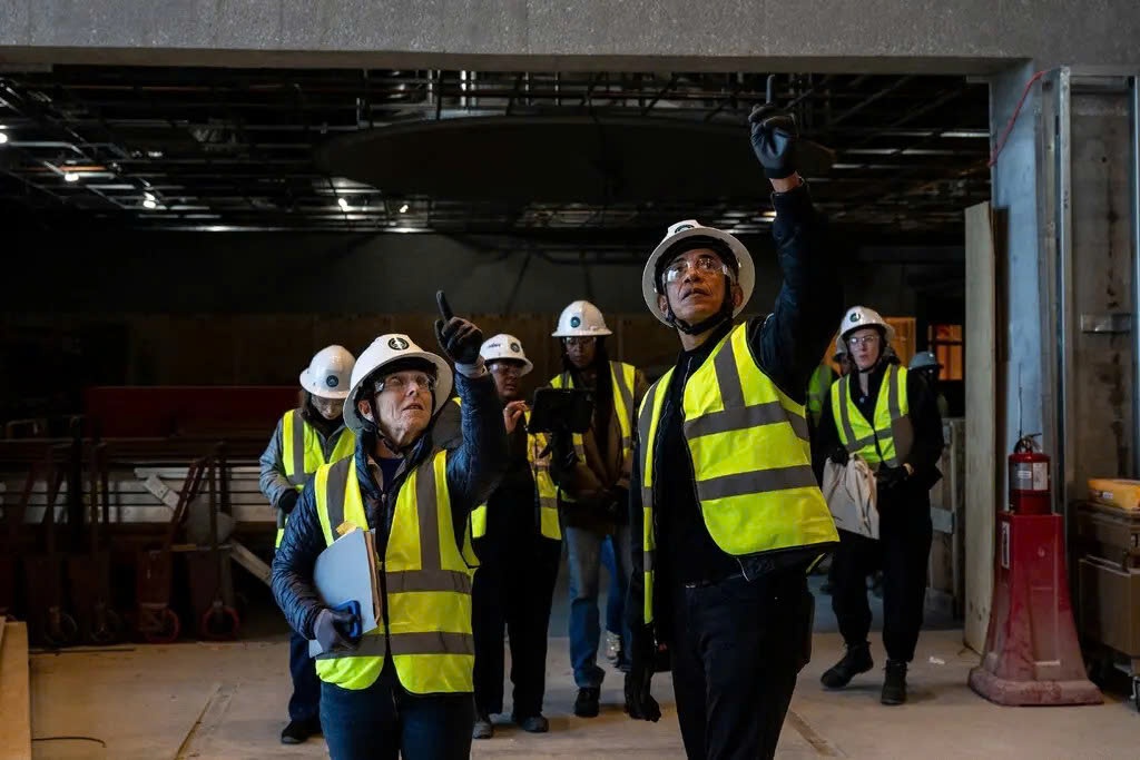 Cựu Tổng thống Obama đến công trường để giám sát thi công Obamalisk vào tháng 5. Ảnh: Quỹ Obama.