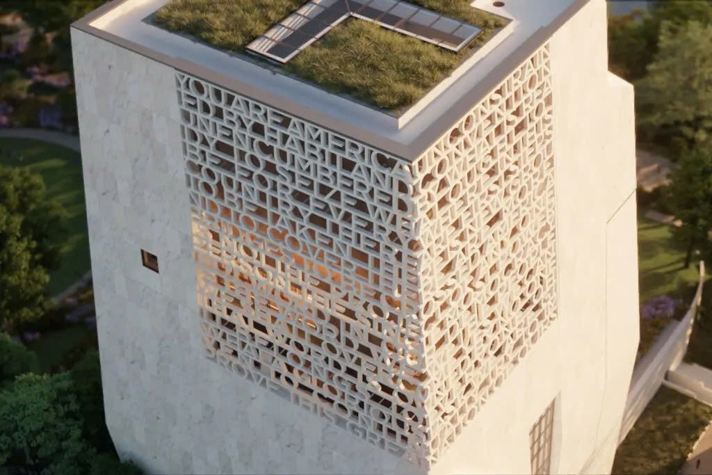 Phần đỉnh của Obamalisk với các từ xuất hiện trong một bài phát biểu của cựu tổng thống. Ảnh: Quỹ Obama.