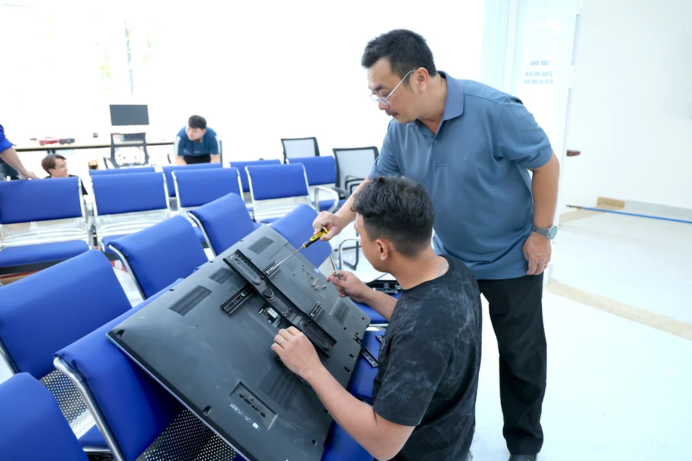 Cán bộ tích cực kiểm tra máy móc, thiết bị tại Trung tâm. Ảnh: LÊ THOA