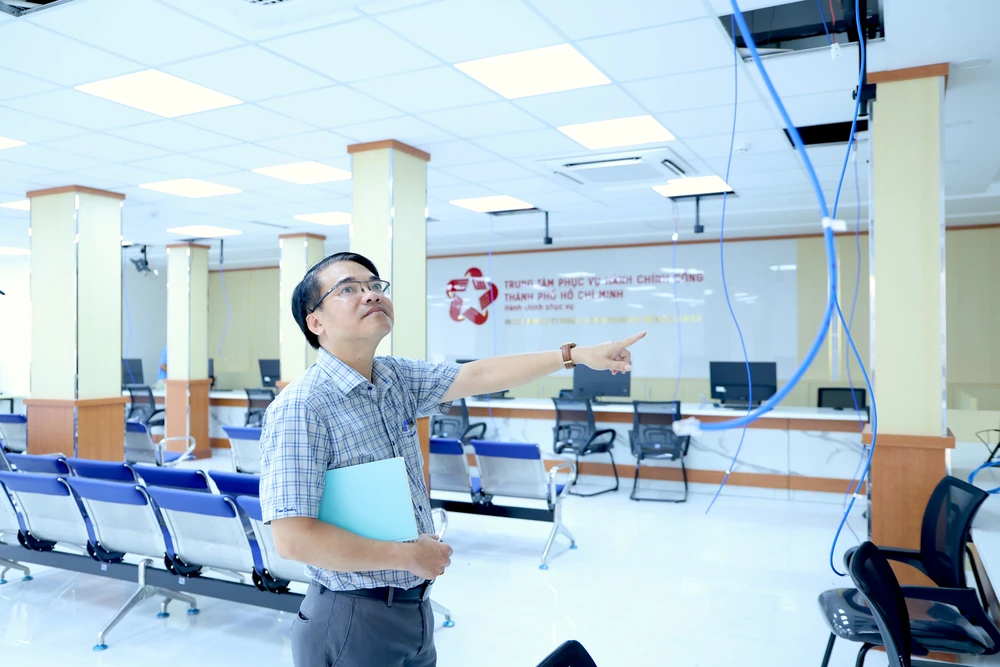 Ông Dương Văn Thơm, Phó Giám đốc Trung tâm Phục vụ Hành chính công TP.HCM, kiểm tra khâu chuẩn bị vận hành vào sáng 27-12. Ảnh: LÊ THOA