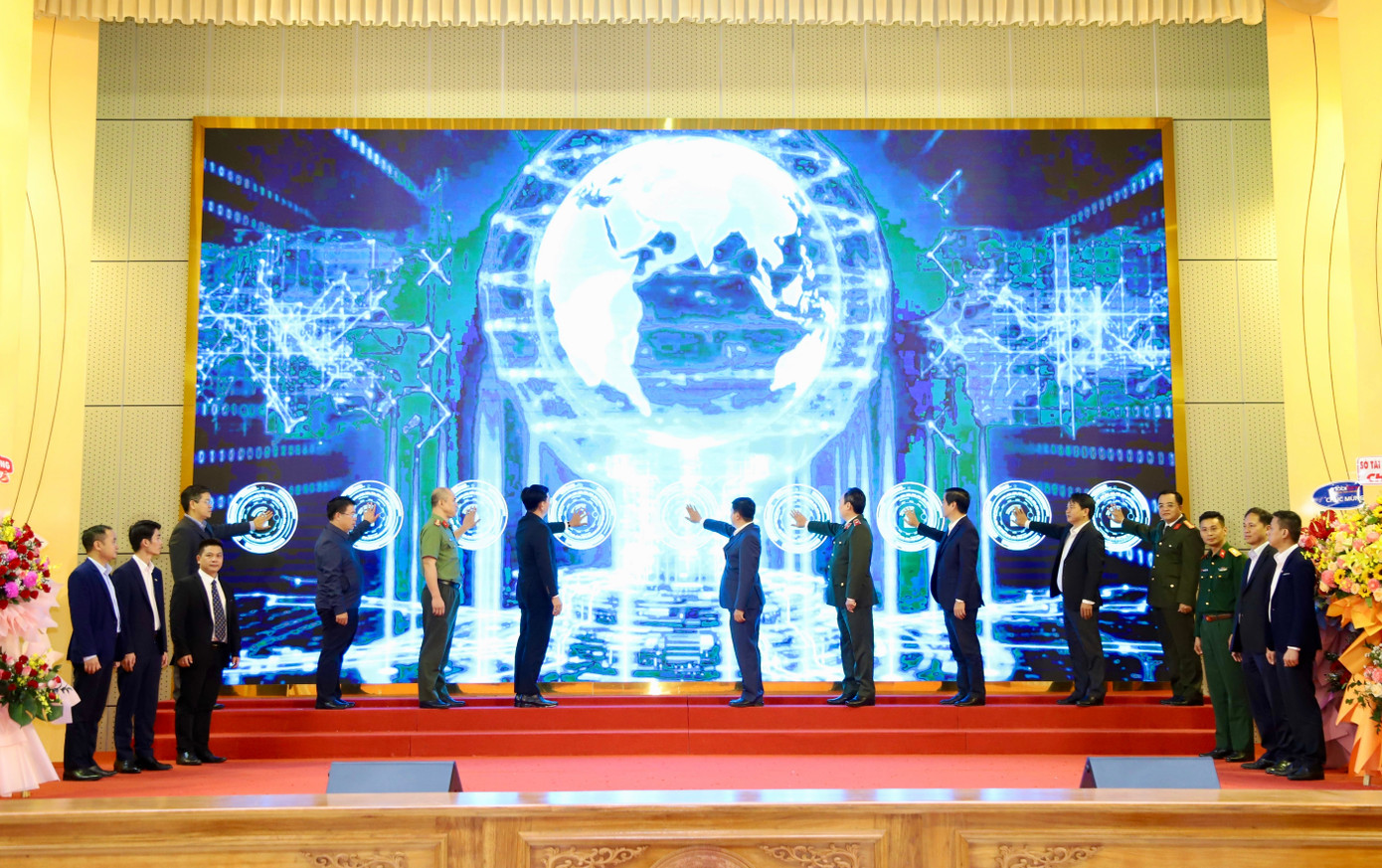 Các đại biểu thực hiện nghi thức ra mắt trung tâm SOC.
