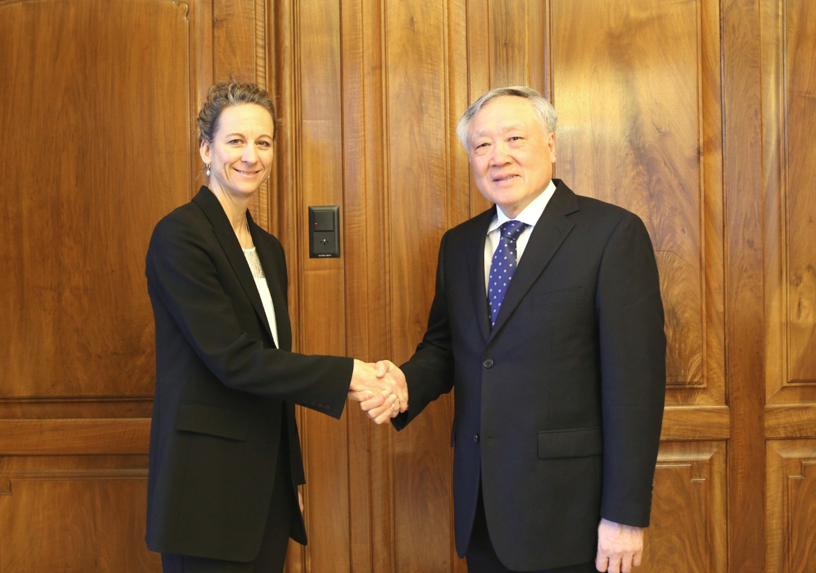 Phó thủ tướng Thường trực Nguyễn Hòa Bình và bà Petra Tschudin, Phó thống đốc Ngân hàng Trung ương Thụy Sĩ. Ảnh: NGUYỄN HOÀNG