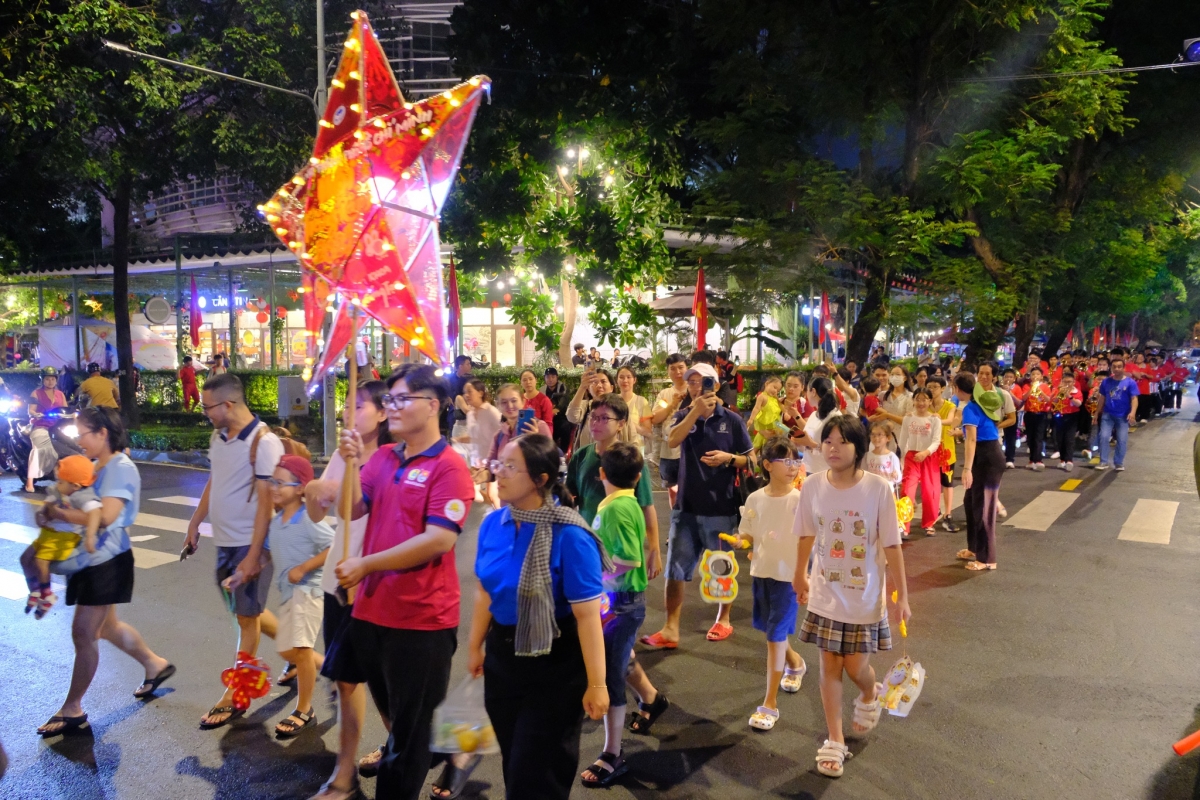 Các em thiếu nhi được rước đèn giữa lòng thành phố (ảnh: NTN)