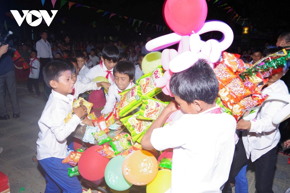 Các em nhỏ vui tươi, phấn khởi khi được phá cỗ
