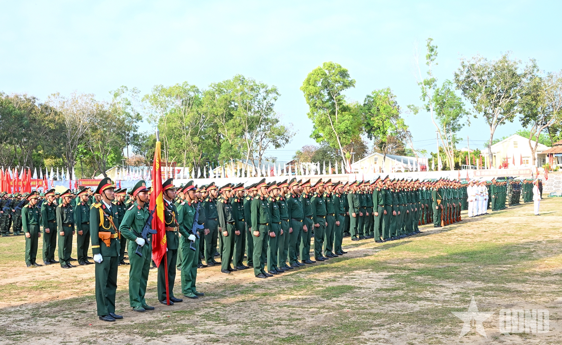 Duyệt đội ngũ tại lễ ra quân huấn luyện.