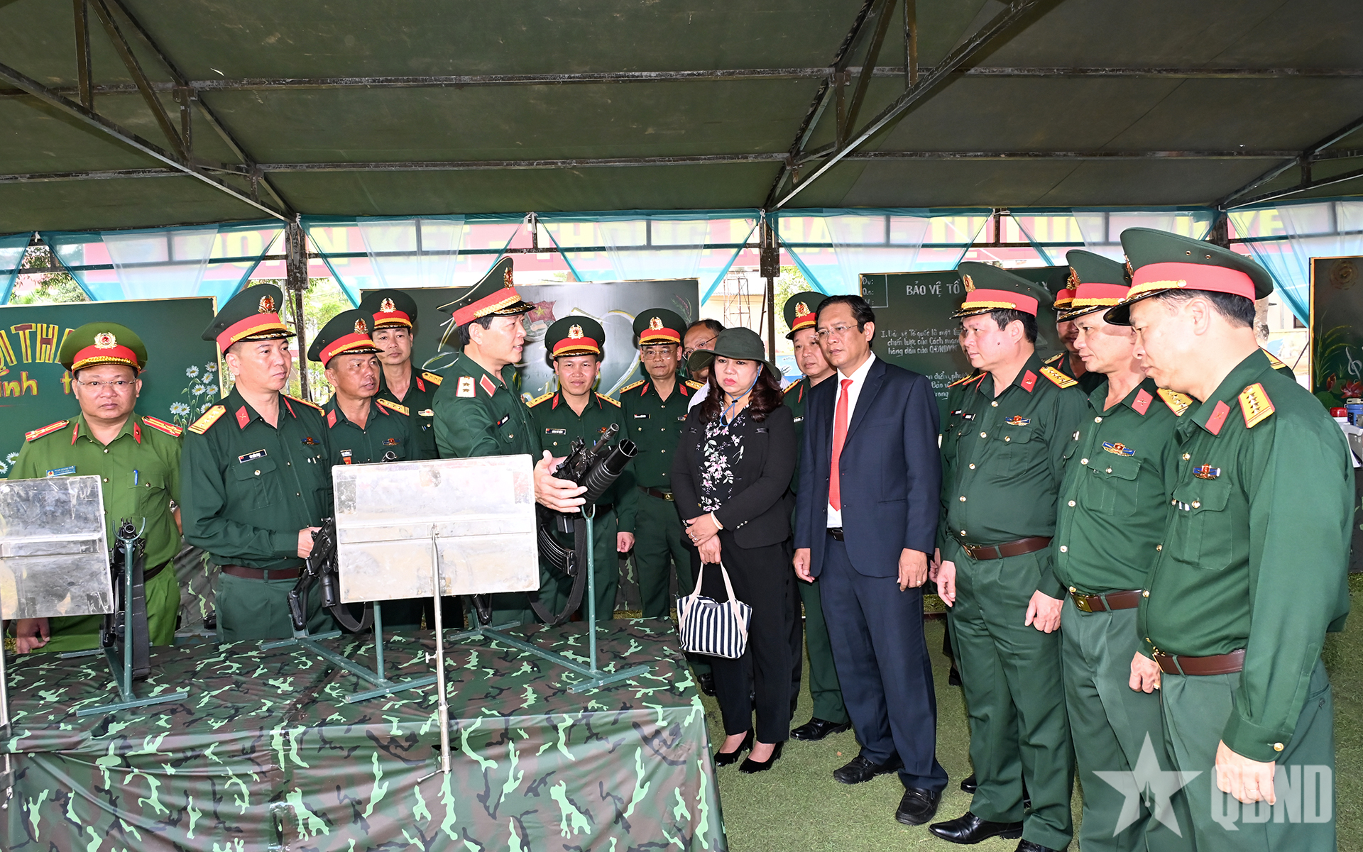 Trung tướng Đào Tuấn Anh và các đại biểu tham quan sáng kiến của Trung đoàn 28.