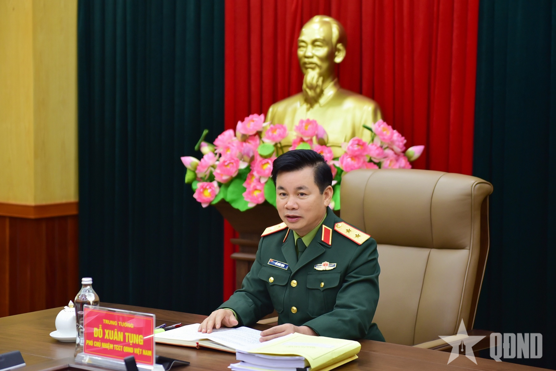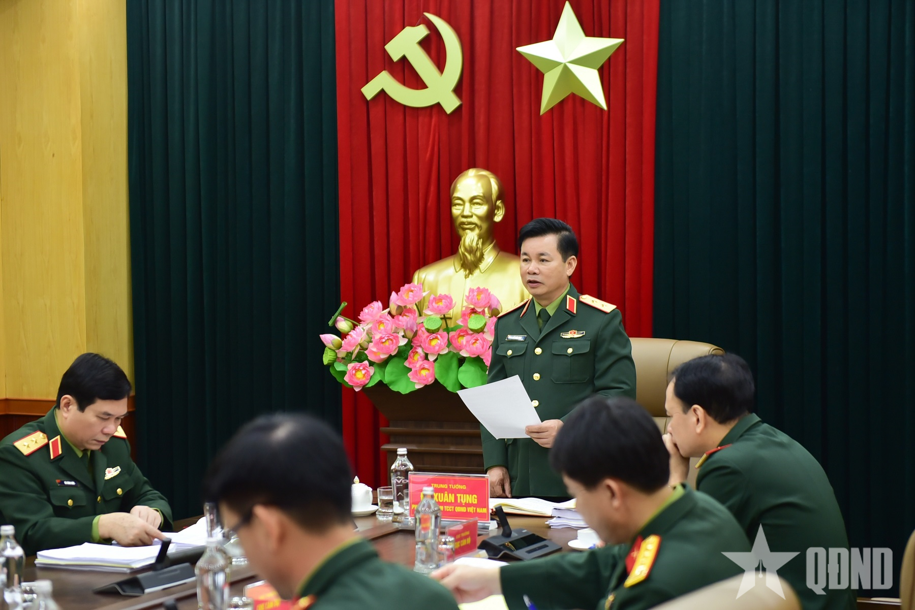 Trung tướng Đỗ Xuân Tụng yêu cầu, với nội dung thứ nhất, các cơ quan rà soát thật kỹ, nghiên cứu theo từng nội dung, từng trang, từng chương, từng mục, từng điều khoản, tiếp thu các ý kiến tại hội nghị, hoàn thiện dự thảo Nghị định để trình Thủ tướng Chính phủ ban hành; với nội dung thứ hai, các cơ quan tham gia rà soát, hoàn thiện, để báo cáo lãnh đạo Tổng cục Chính trị trước khi báo cáo Thường vụ Quân ủy Trung ương xem xét, quyết định.