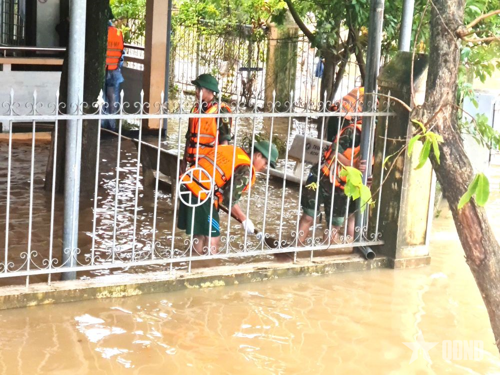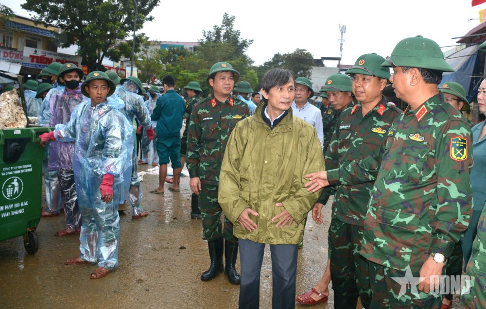 Sau khi nước rút, Quân khu 4 đã điều động hơn 7.000 cán bộ, chiến sĩ, dân quân thuộc Sư đoàn 968 và Bộ CHQS thành phố Huế cùng nhiều phương tiện, vật chất, chia thành nhiều mũi cơ động đến các phường, xã, trường học, cơ sở y tế, chợ dân sinh... hỗ trợ dọn dẹp, vệ sinh môi trường, thu gom rác thải, khử khuẩn và tu sửa cơ sở hạ tầng bị hư hỏng.