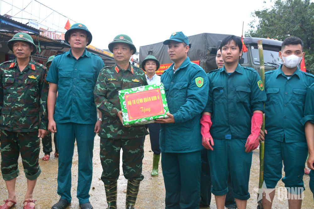 Dịp này, Trung tướng Hà Thọ Bình đã trao tặng các phần quà động viên cán bộ, chiến sĩ trực tiếp làm nhiệm vụ giúp dân khắc phục hậu quả mưa lũ, đồng thời trao quà, gửi lời thăm hỏi, chia sẻ tới các giáo viên, y, bác sĩ, tiểu thương chịu thiệt hại do thiên tai.