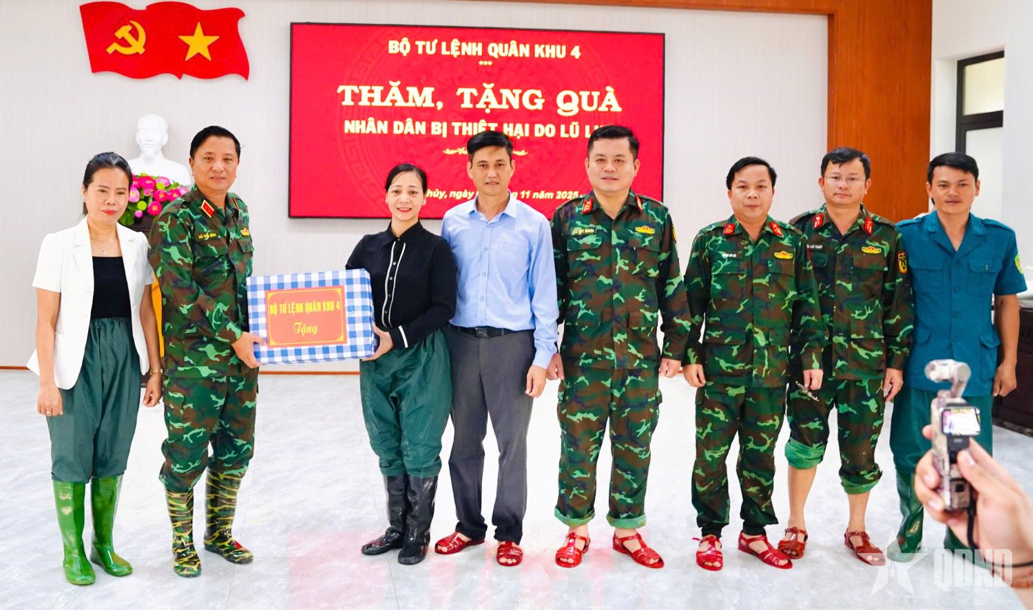 Đồng chí Tư lệnh Quân khu 4 chia sẻ sâu sắc với cấp ủy, chính quyền và người dân địa phương; khẳng định cán bộ, chiến sĩ LLVT Quân khu sẽ luôn đồng hành, hỗ trợ nhân dân trong mọi hoàn cảnh; quyết tâm không để ai phải thiếu đói, chịu rét sau mưa lũ.