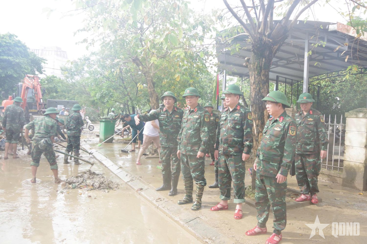 Trung tướng Hà Thọ Bình kiểm tra công tác khắc phục hậu quả mưa lũ.