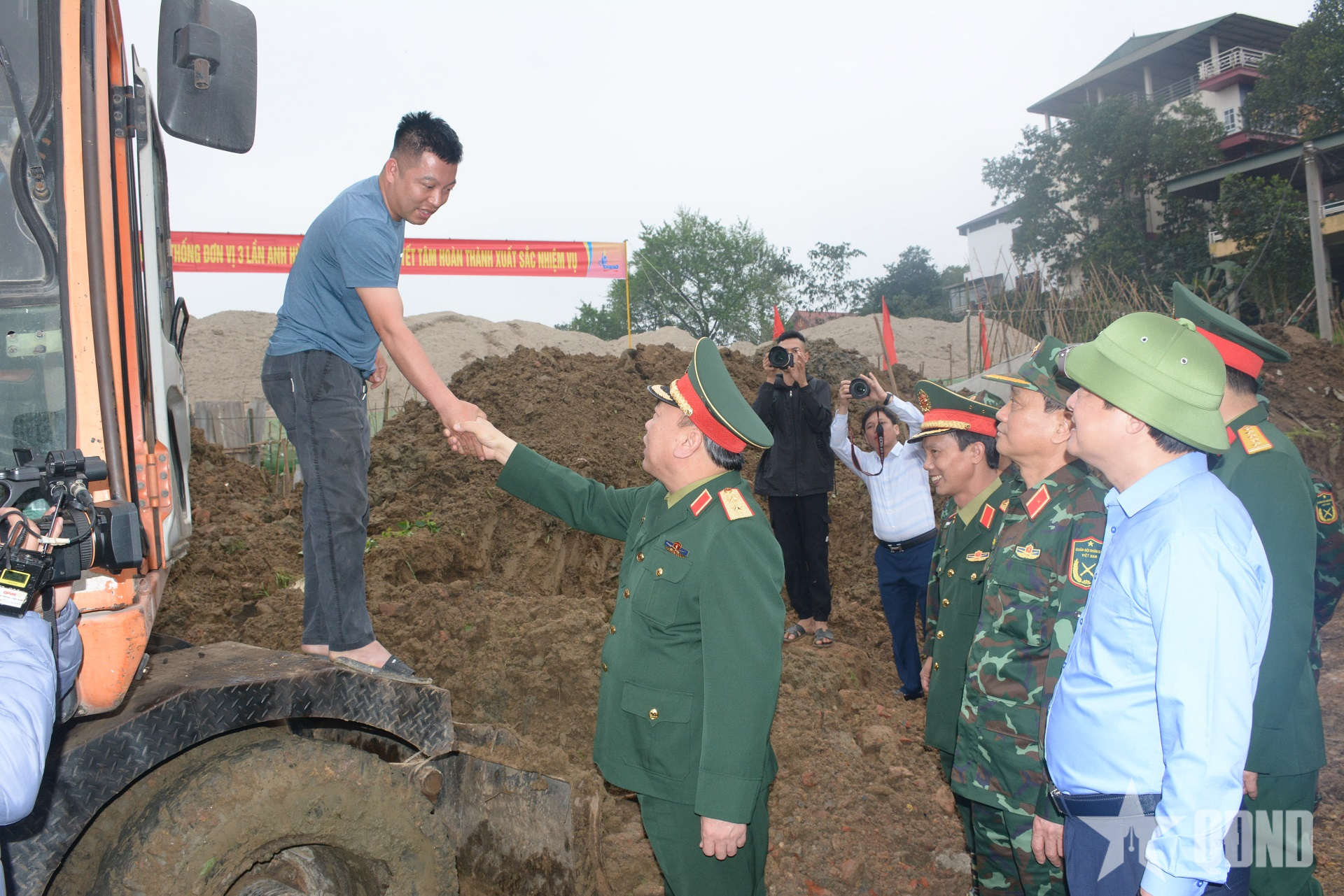 Đồng chí Phó tổng Tham mưu trưởng thăm hỏi, cảm ơn các doanh nghiệp trực tiếp hỗ trợ thi công.