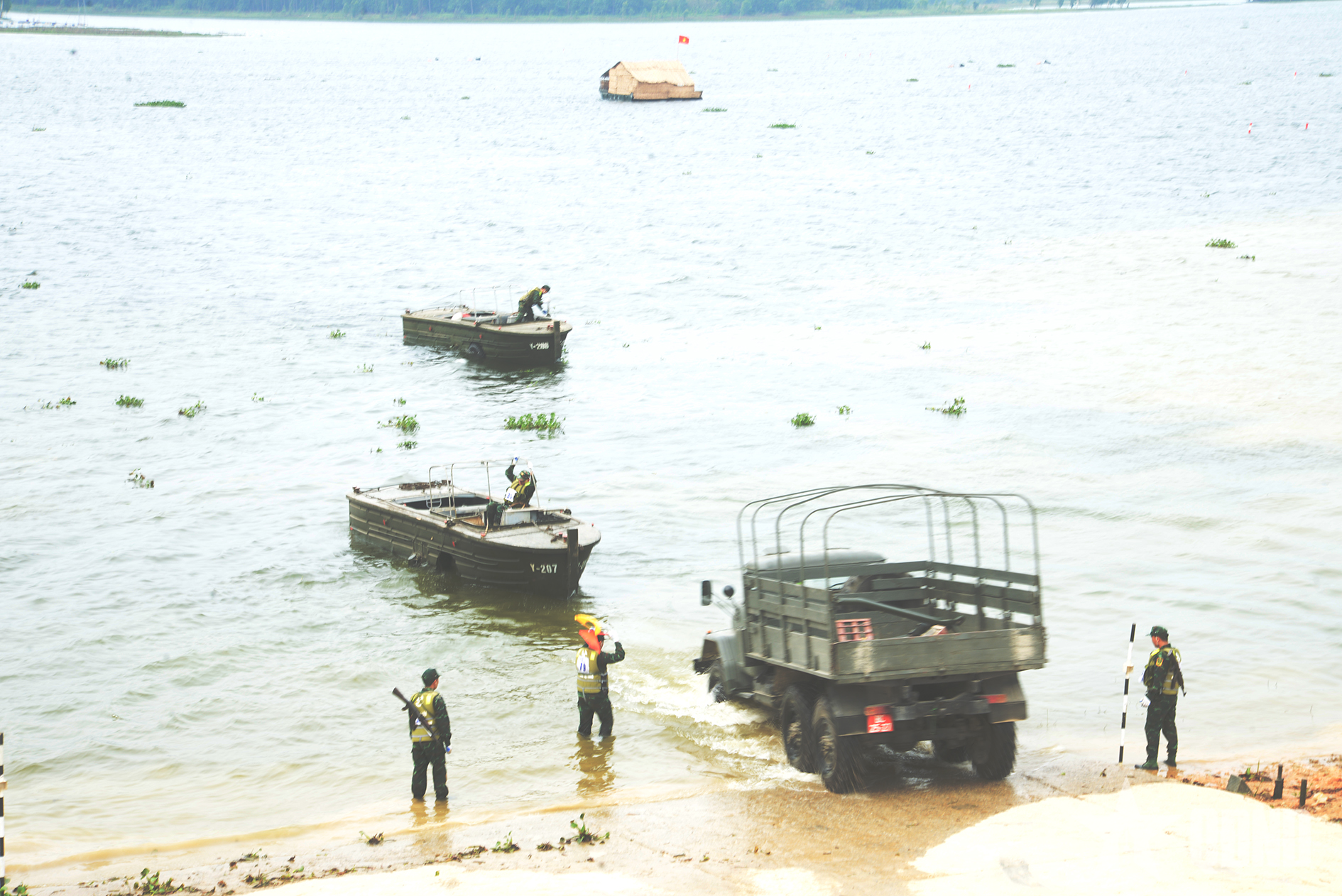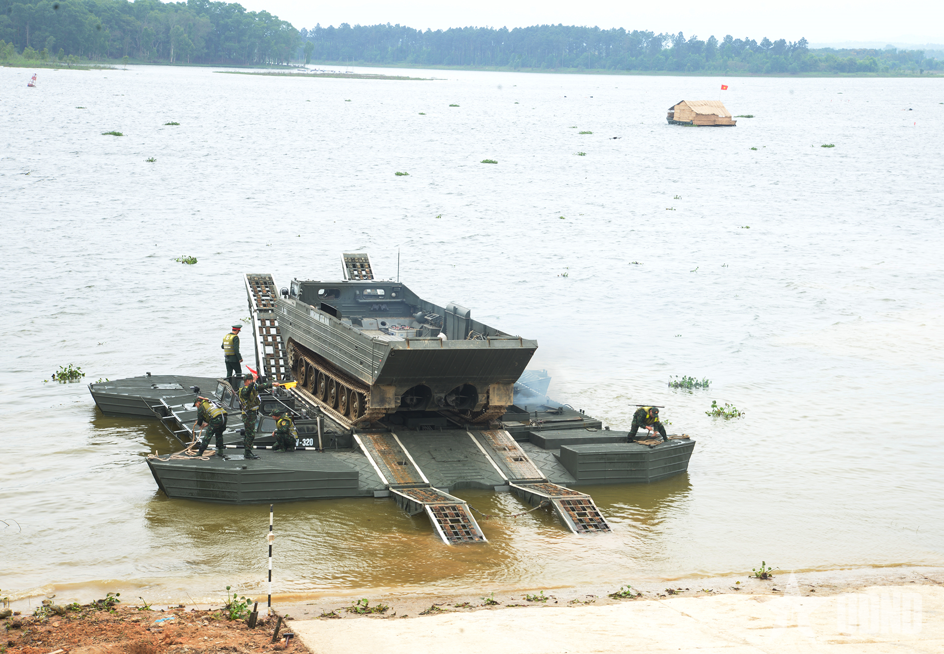 Thực hành hội thao bảo đảm công binh vượt sông.
