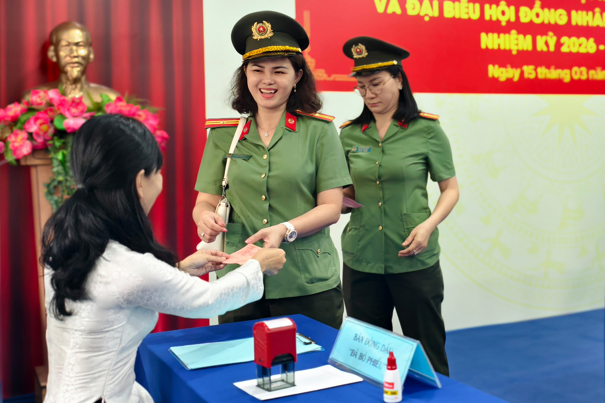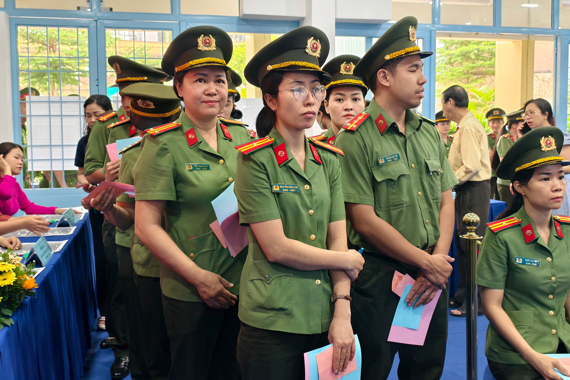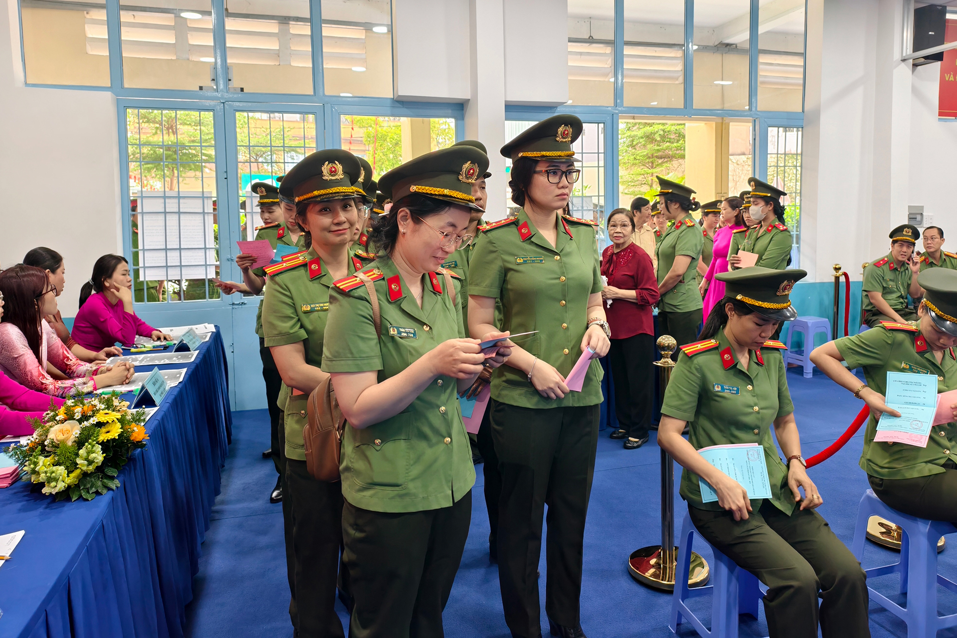 Hình ảnh khoảng 400 cán bộ Công an TP.HCM bỏ phiếu thể hiện sự gắn kết giữa lực lượng vũ trang và nhân dân tại địa phương. Ảnh: N. TÂN
