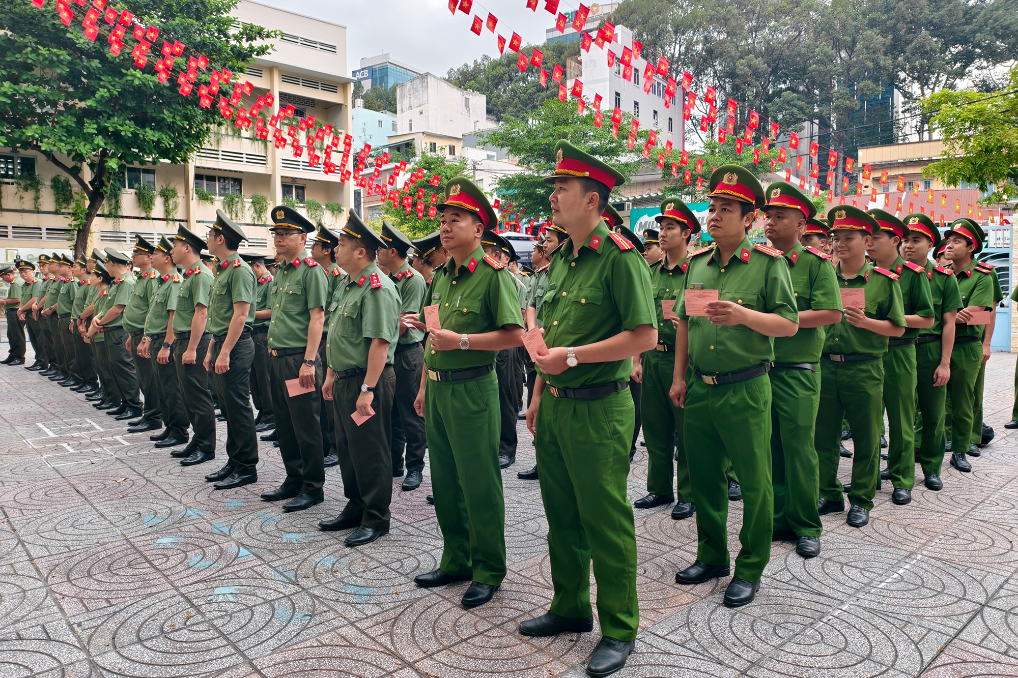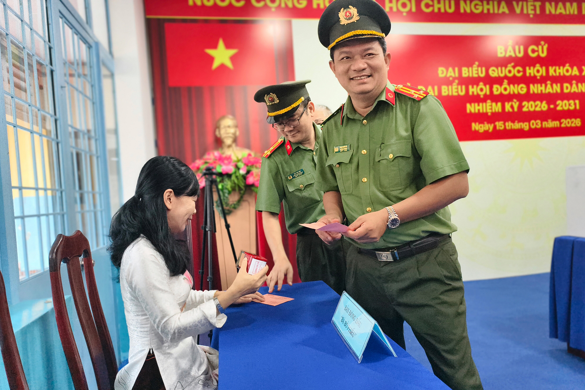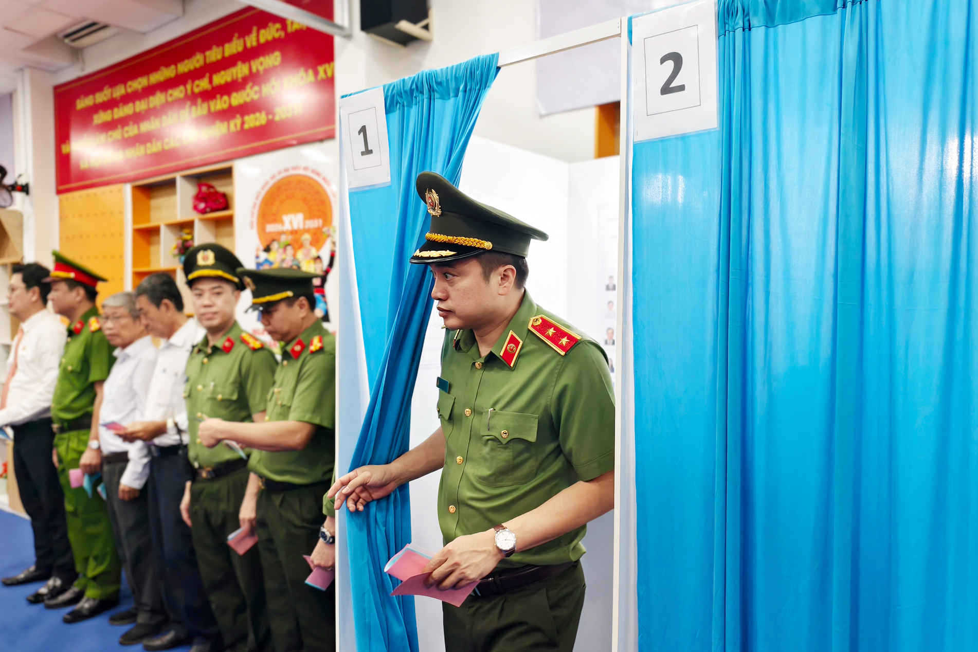 Hình ảnh khoảng 400 cán bộ Công an TP.HCM bỏ phiếu thể hiện sự gắn kết giữa lực lượng vũ trang và nhân dân tại địa phương. Ảnh: N. TÂN