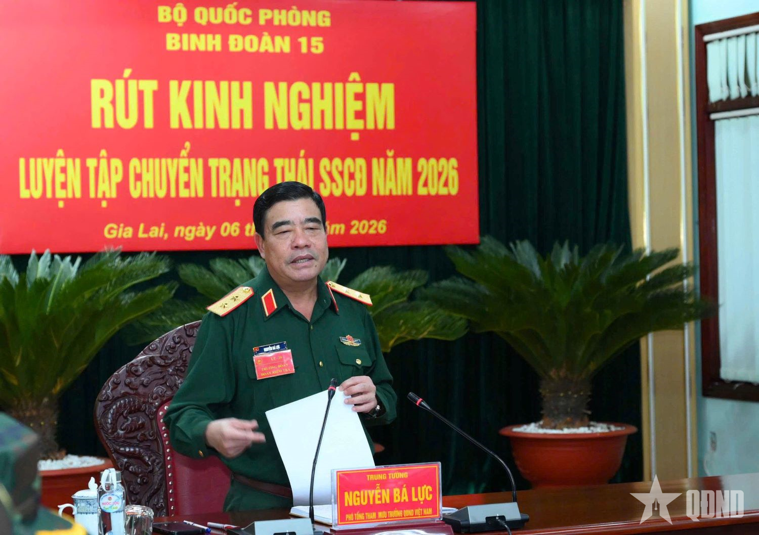 Kết luận buổi kiểm tra, Trung tướng Nguyễn Bá Lực biểu dương tinh thần trách nhiệm, sự chủ động của cán bộ, chiến sĩ Binh đoàn 15 trong công tác chuẩn bị và tổ chức luyện tập chuyển trạng thái SSCĐ.