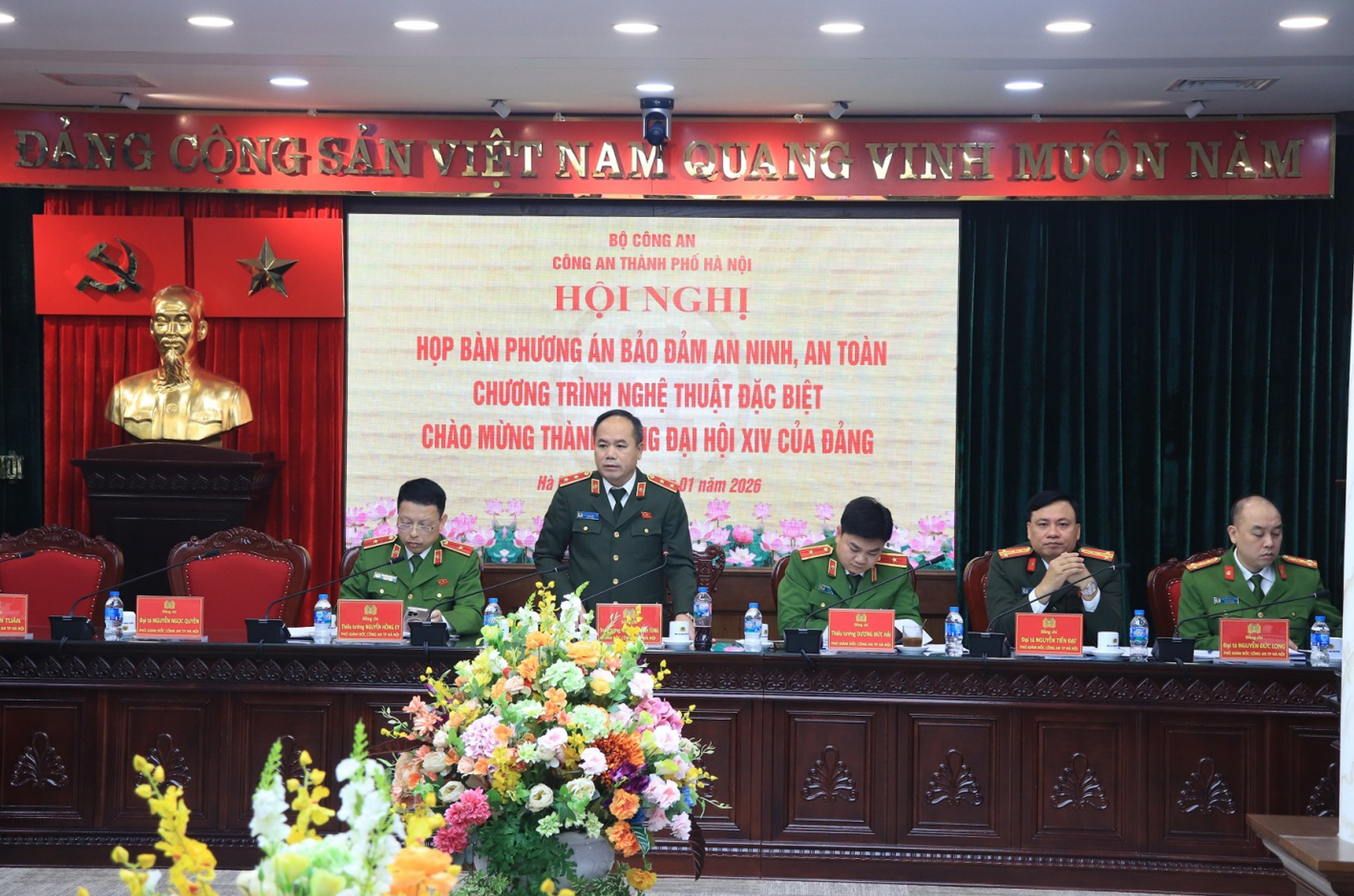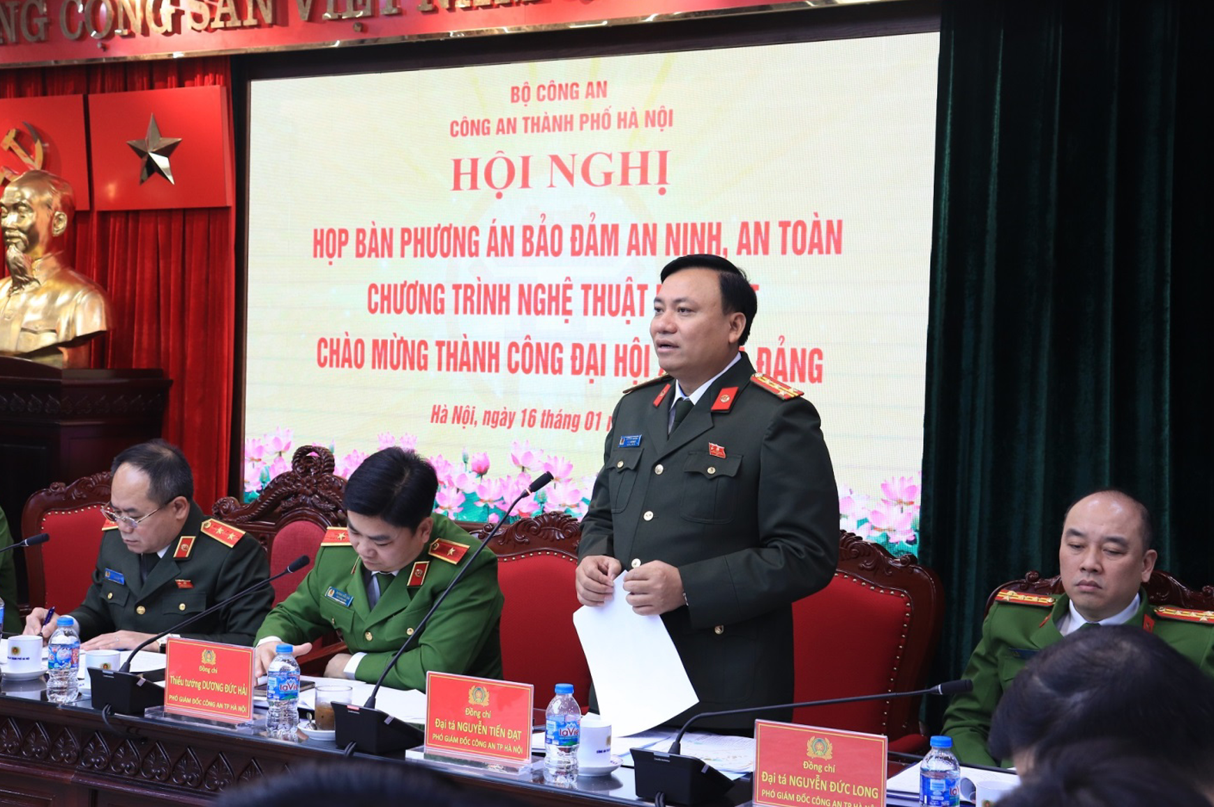 Trung tướng Nguyễn Thanh Tùng, Giám đốc CATP phát biểu chỉ đạo đối với nội dung triển khai Phương án bảo đảm an ninh, an toàn Chương trình nghệ thuật đặc biệt chào mừng thành công Đại hội XIV của Đảng