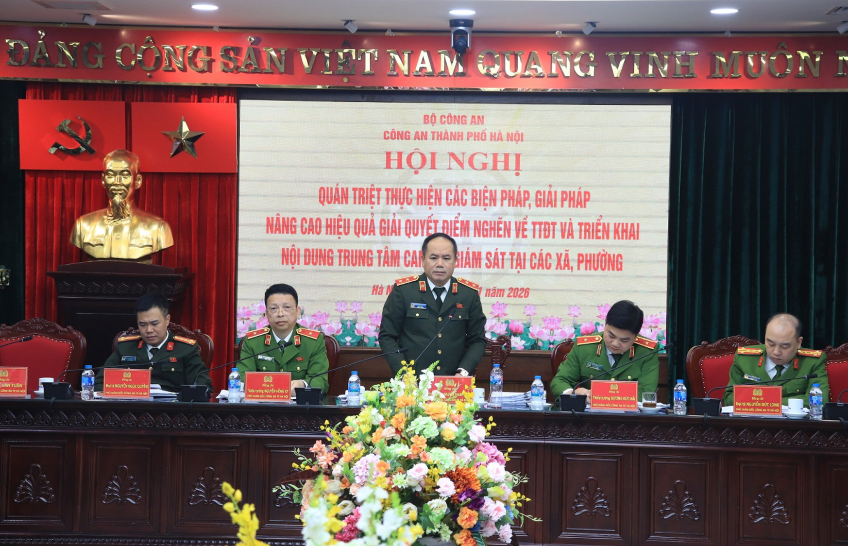 Trung tướng Nguyễn Thanh Tùng, Giám đốc CATP chủ trì hội nghị. Dự hội nghị còn có các đồng chí trong Ban Giám đốc CATP cùng đại diện chỉ huy các phòng nghiệp vụ CATP, đại diện chỉ huy Công an cấp xã. Hội nghị được truyền hình trực tuyến từ điểm cầu trung tâm CATP đến các đơn vị và Công an cấp xã.