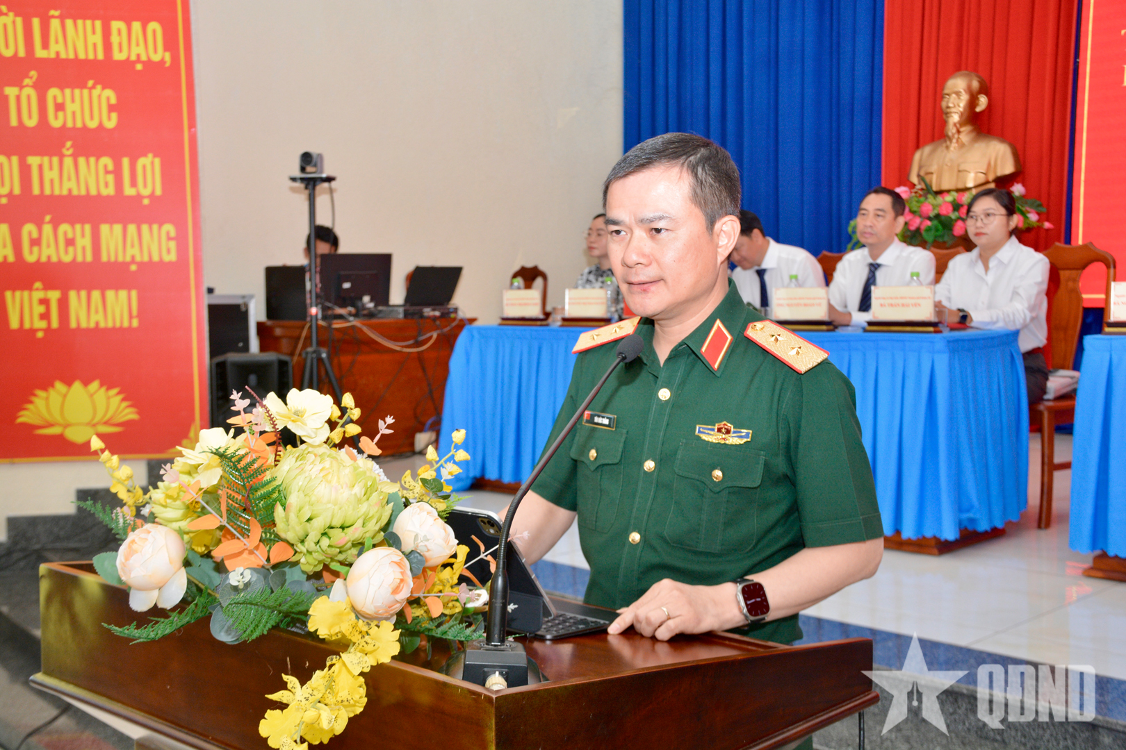 Trung tướng Tào Đức Thắng trình bày chương trình hành động tại hội nghị.
