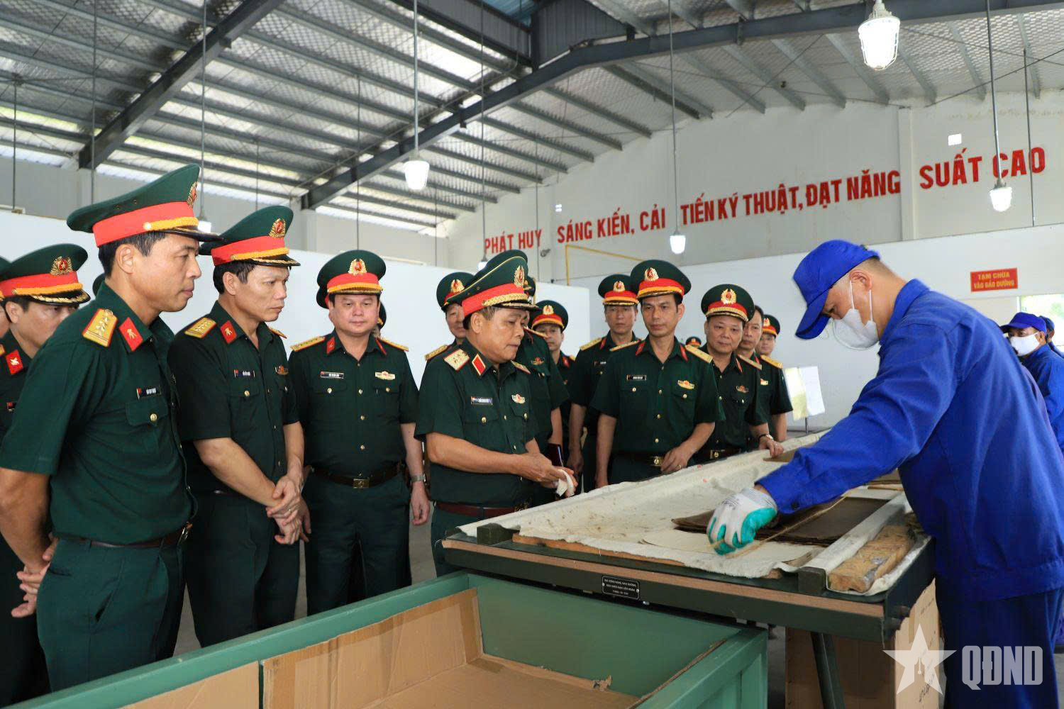 Trung tướng Trần Minh Đức kiểm tra công tác bao gói, bảo quản đạn dược tại Kho KV1, Cục Quân khí, Tổng cục Hậu cần-Kỹ thuật.