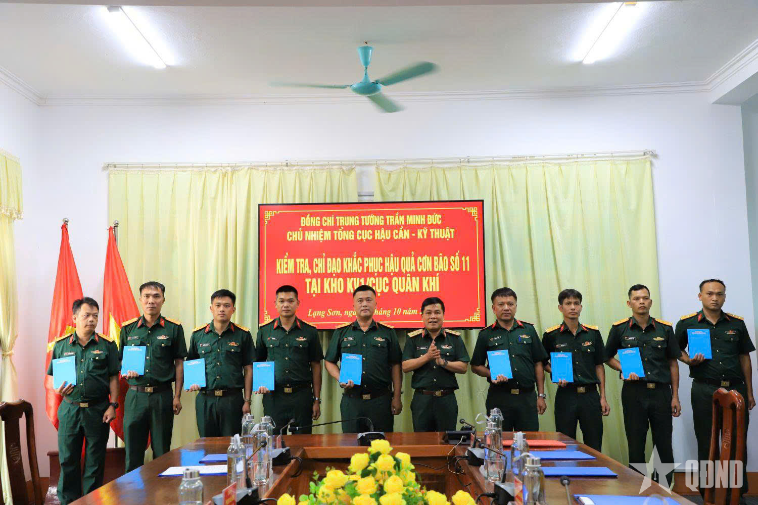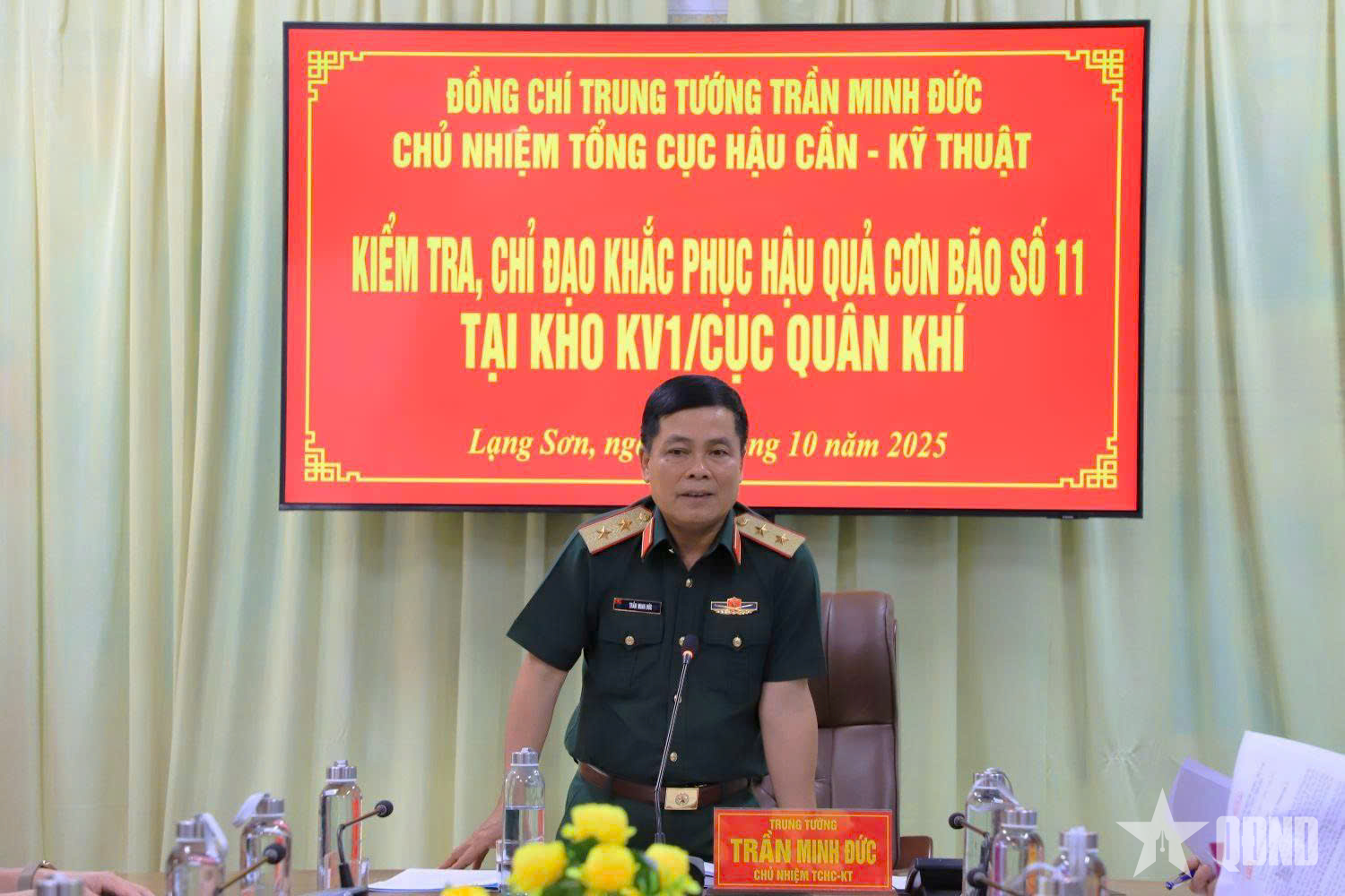 Trung tướng Trần Minh Đức chỉ đạo công tác khắc phục hậu quả cơn bão số 11 tại Kho KV1.