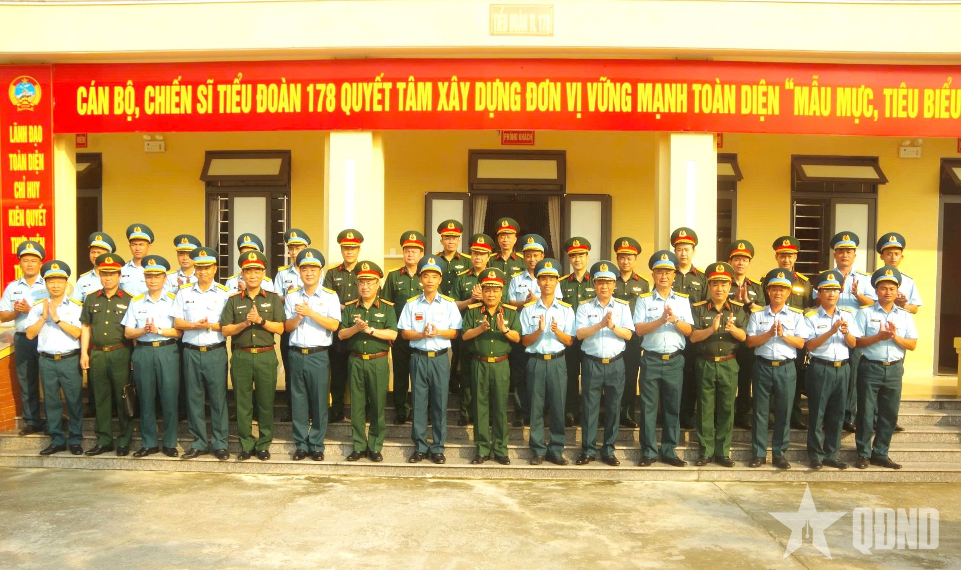 Trung tướng Trần Minh Đức và đoàn công tác chụp ảnh chung với cán bộ Tiểu đoàn 178.
