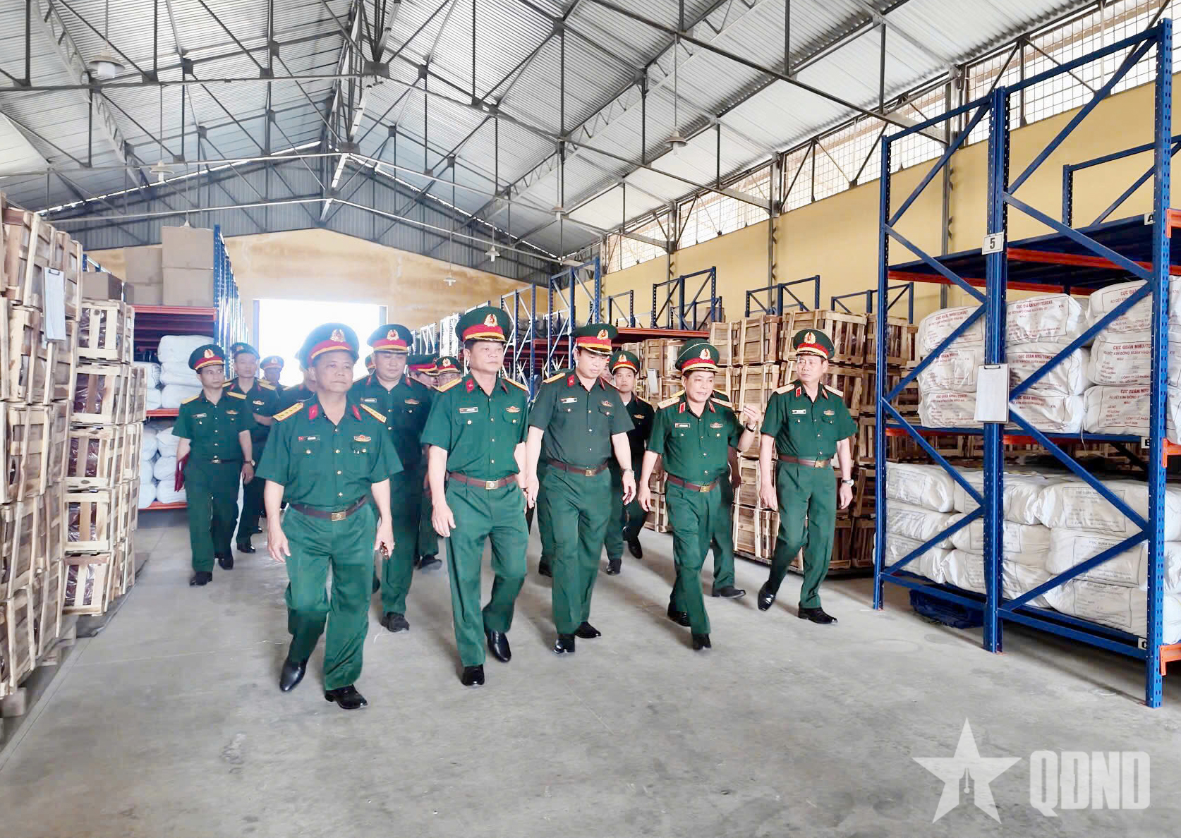 Đoàn công tác kiểm tra việc quản lý cất giữ, bảo quản vật chất hậu cần tại Kho Hậu cần tổng hợp, Cục Hậu cần - Kỹ thuật Quân khu 5.