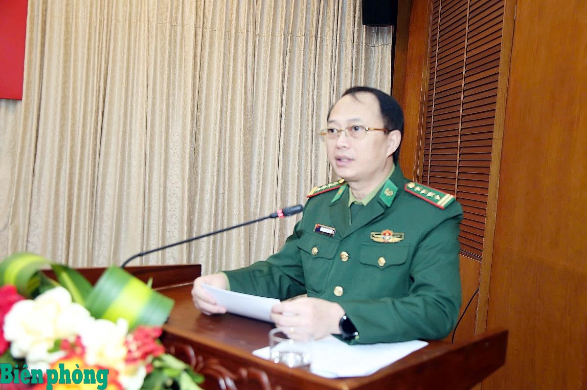 Đại tá Hoàng Ngọc Linh, Bí thư Đảng ủy, Phó Cục trưởng Cục Trinh sát BĐBP phát biểu điều hành hội nghị. Ảnh: Cẩm Linh