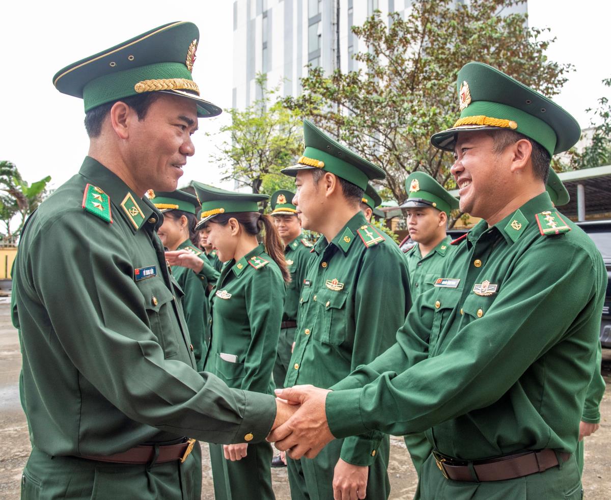 Đoàn công tác của Bộ Tư lệnh Bộ đội Biên phòng tại Bộ Tư lệnh Quân khu 5. Ảnh: Lê Văn Chương