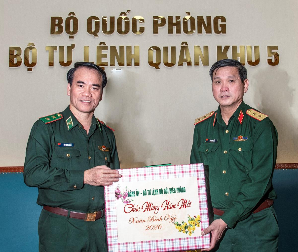 Nhân dịp này, Trung tướng Vũ Trung Kiên đã gửi tặng quà Tết Bính Ngọ 2026 của Đảng ủy, Bộ Tư lệnh Bộ đội Biên phòng cho Bộ đội Biên phòng các tỉnh, thành phố trên địa bàn Quân khu 5.
