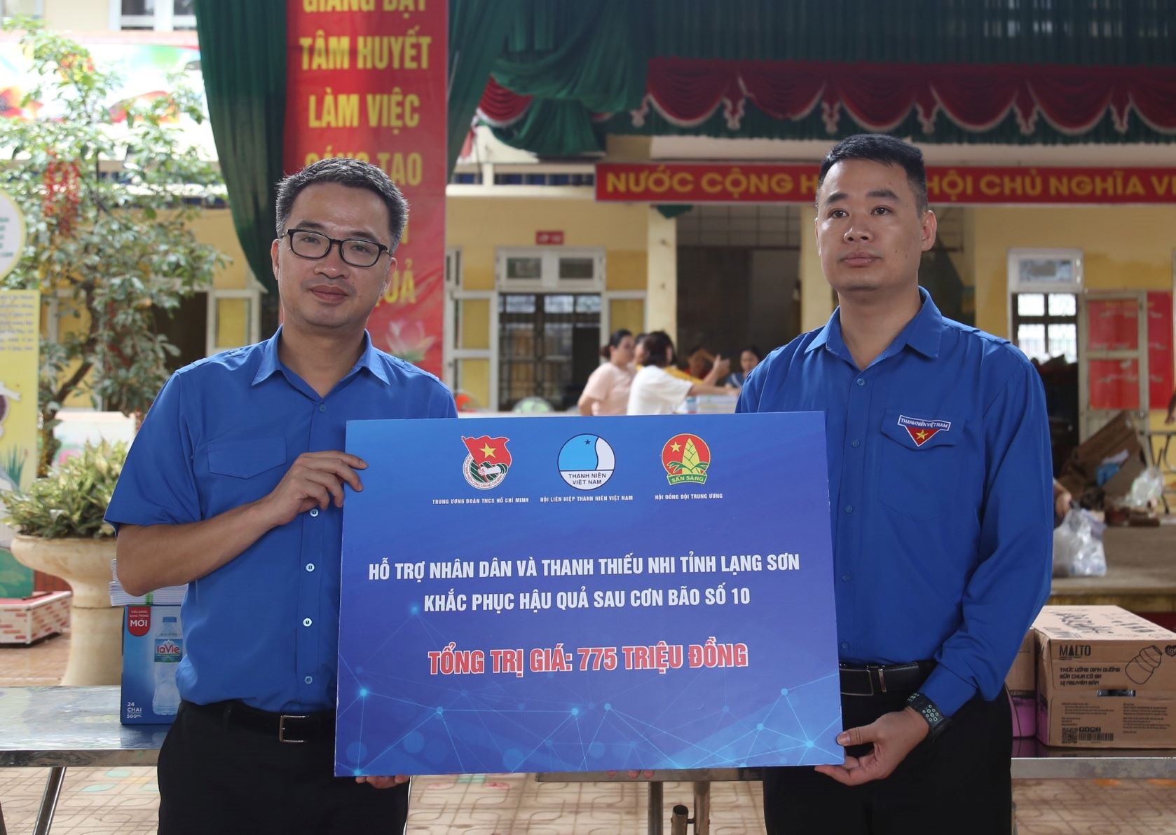 Đoàn công tác trao quà tặng với tổng trị giá gần 800 triệu đồng, gồm tiền mặt và vật phẩm thiết yếu, nhằm chia sẻ khó khăn, tiếp thêm động lực để đoàn viên, thanh thiếu nhi và các gia đình chịu thiệt hại do bão lũ sớm vượt qua khó khăn, ổn định cuộc sống.