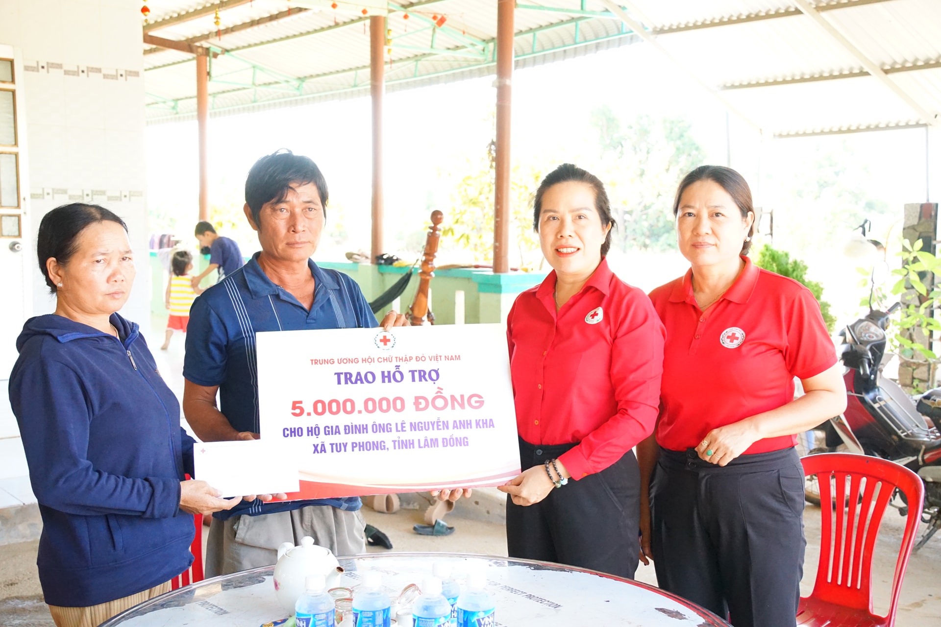Dịp này, Hội Chữ thập đỏ tỉnh cũng thăm hỏi và trao hỗ trợ cho 20 hộ ở Thôn Hội Nhơn, tổng trị giá 80 triệu đồng, đồng thời tặng 2 hộ gia đình ở xã Tuy Phong và xã Sông Lũy bị hư hỏng nhà, tốc mái, có người chết hoặc mất tích, mỗi suất 5 triệu đồng, do Trung ương Hội hỗ trợ.