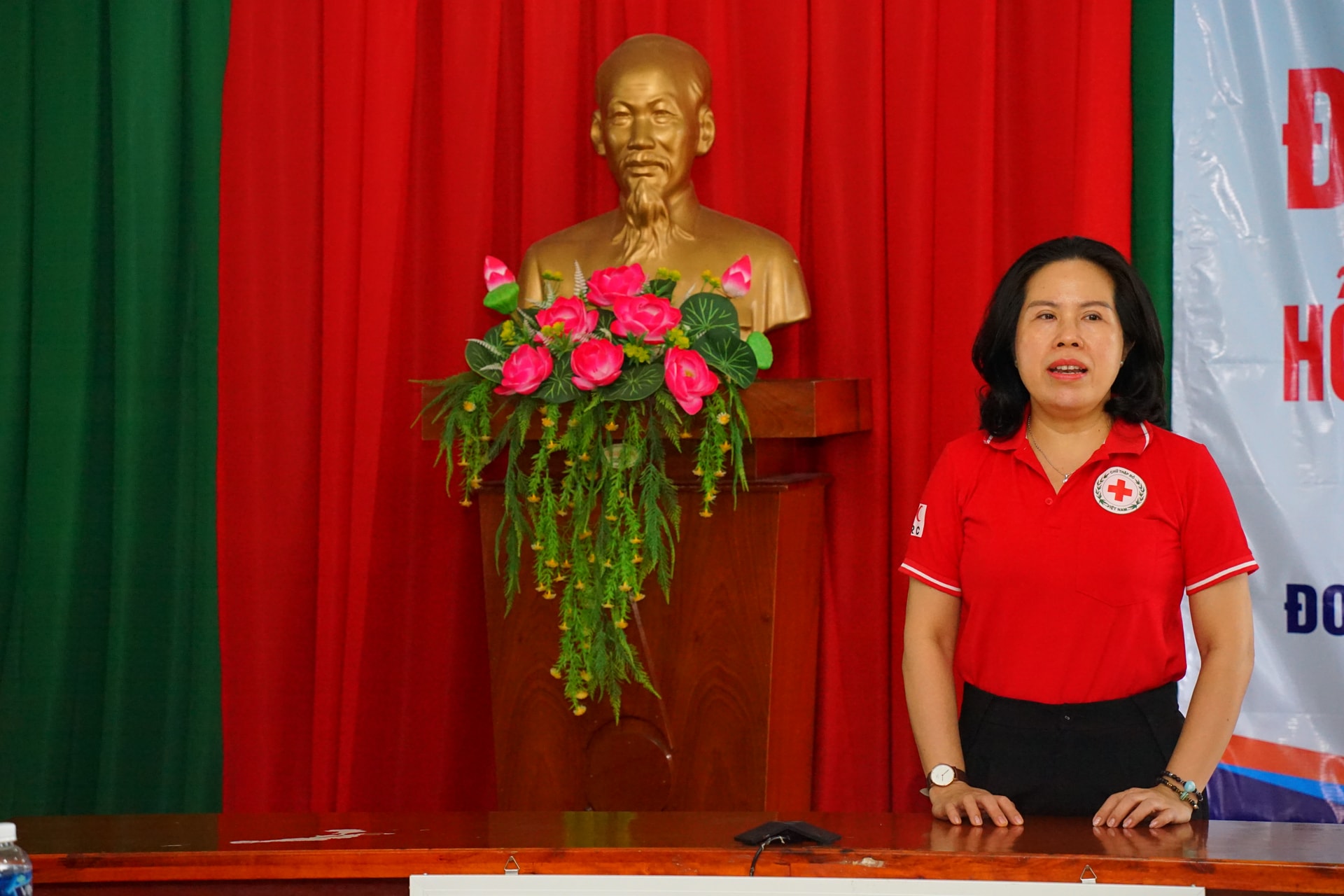 Bà Nguyễn Thị Thanh Nhàn, Phó Chủ tịch Hội Chữ thập đỏ tỉnh Lâm Đồng phát biểu tại buổi trao quà