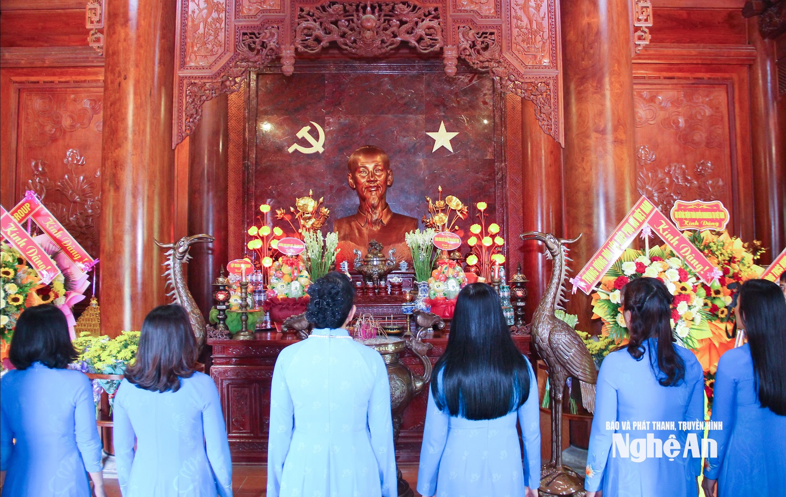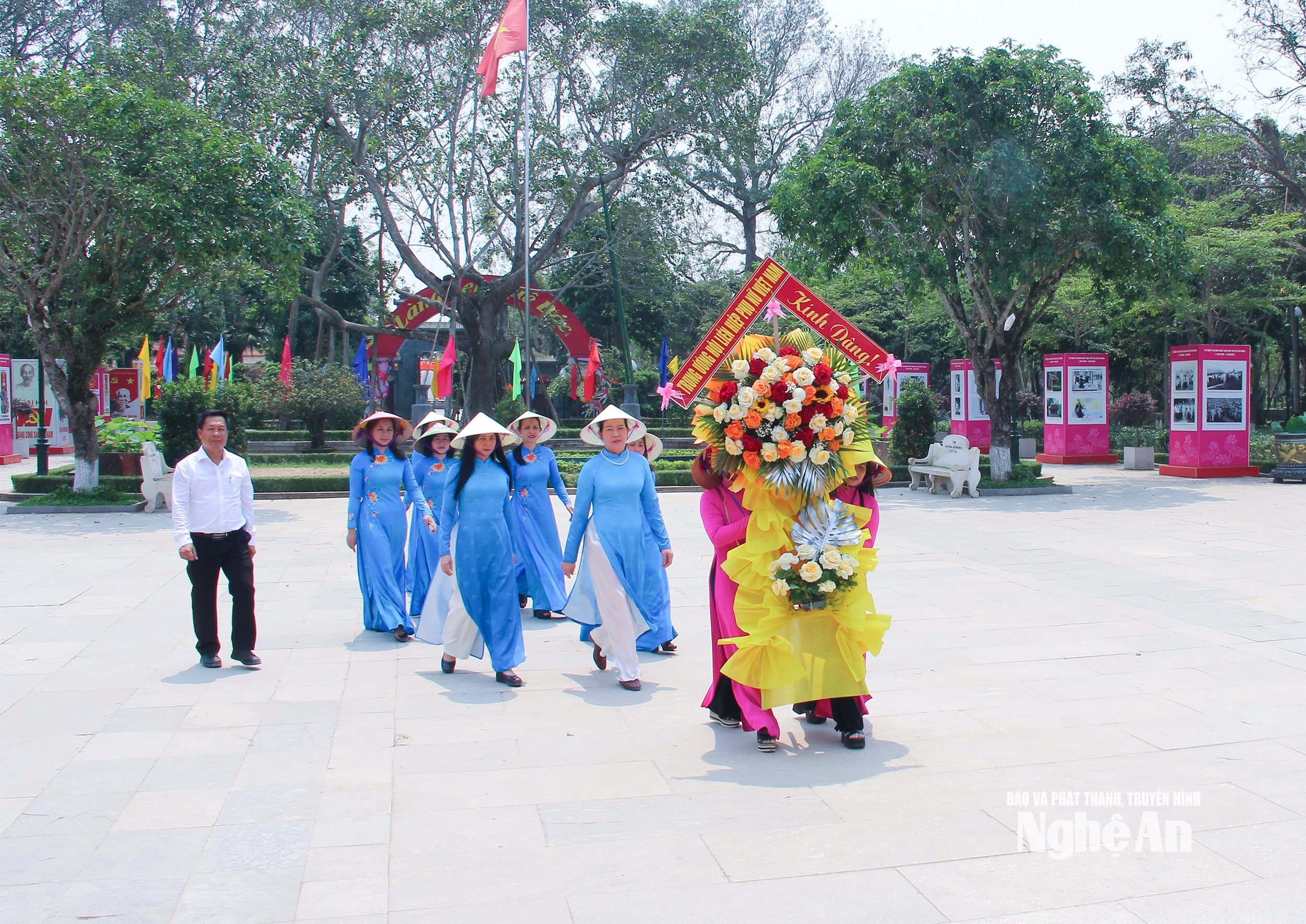Đoàn công tác Trung ương Hội LHPN Việt Nam và tỉnh Nghệ An đã dâng lẵng hoa tươi thắm và nén hương thơm tưởng niệm và bày tỏ tấm lòng thành kính và biết ơn vô hạn trước công lao trời biển của Chủ tịch Hồ Chí Minh, vị lãnh tụ thiên tài của dân tộc Việt Nam, nhà hoạt động lỗi lạc của phong trào cộng sản và công nhân quốc tế.