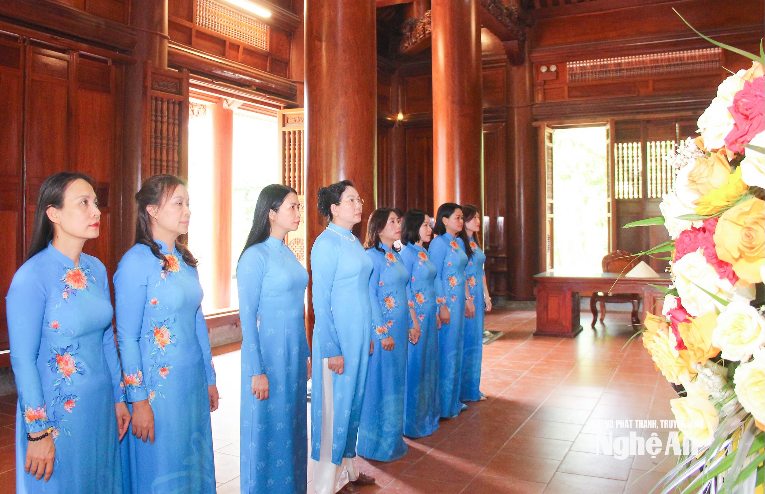 Đoàn công tác của Trung ương Hội LHPN Việt Nam và tỉnh Nghệ An làm lễ tưởng niệm Chủ tịch Hồ Chí Minh tại Khu Di tích Quốc gia đặc biệt Kim Liên. Ảnh: Mai Hoa