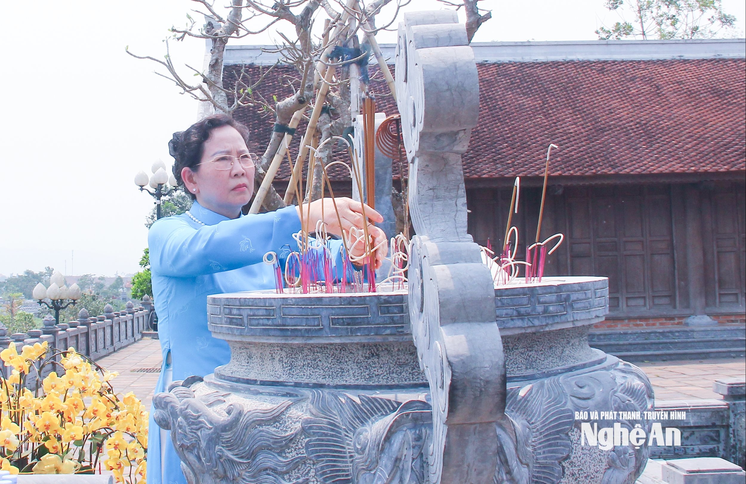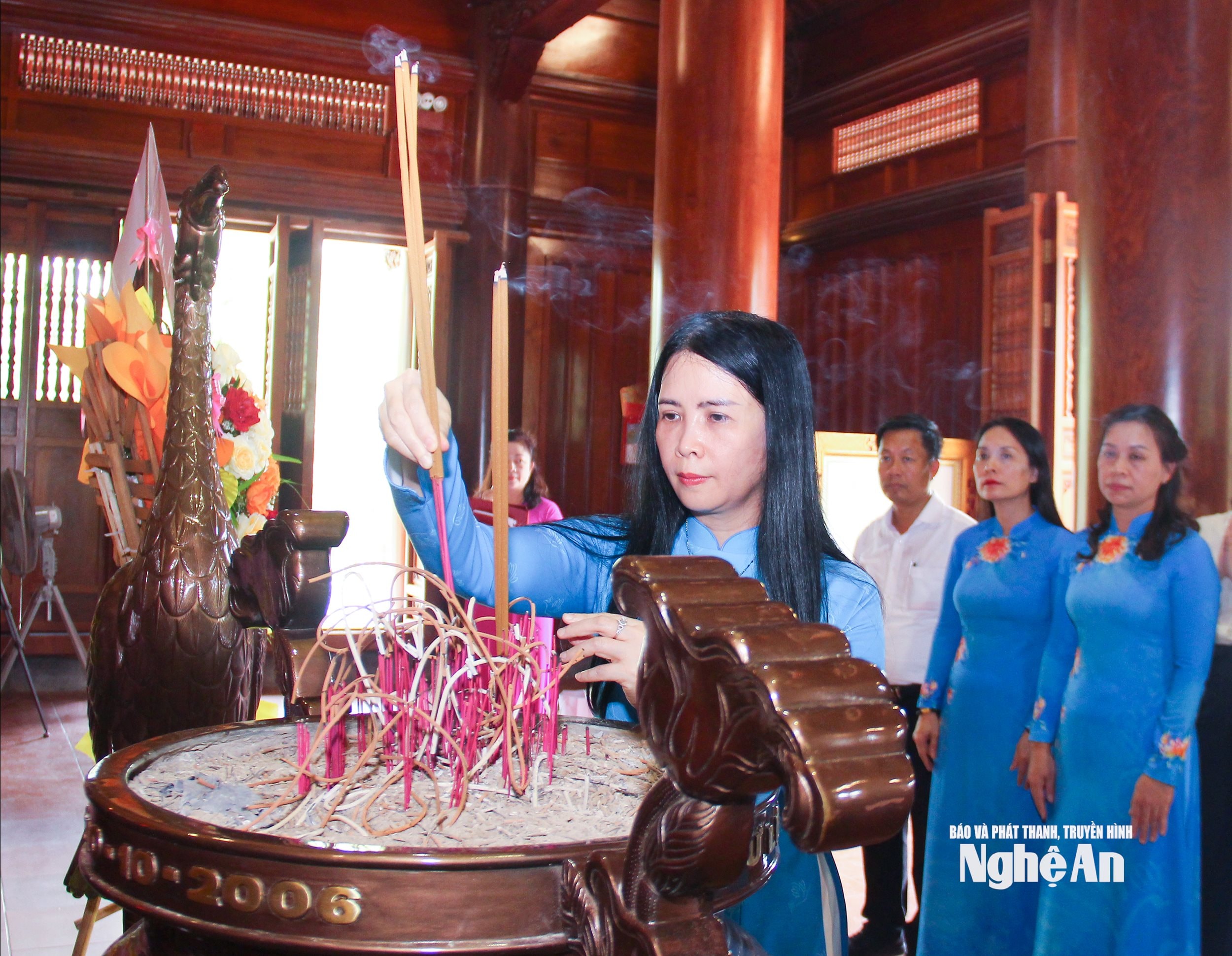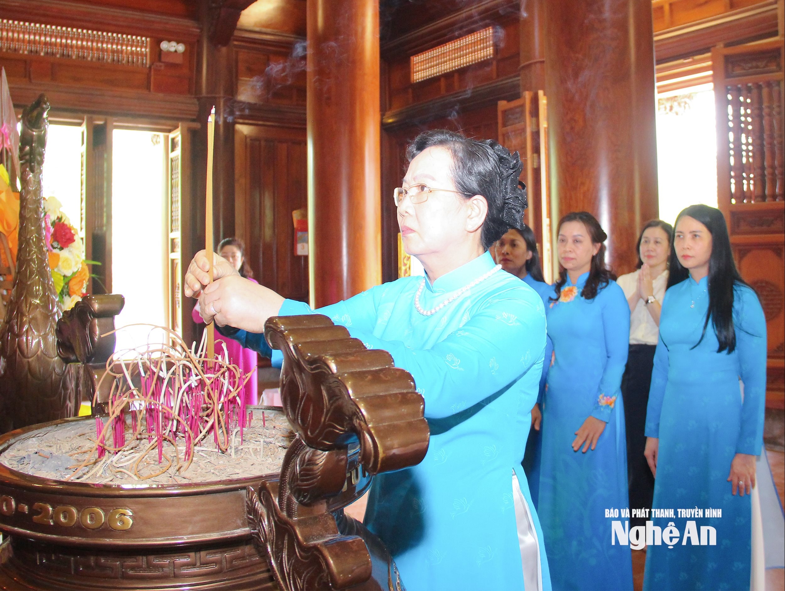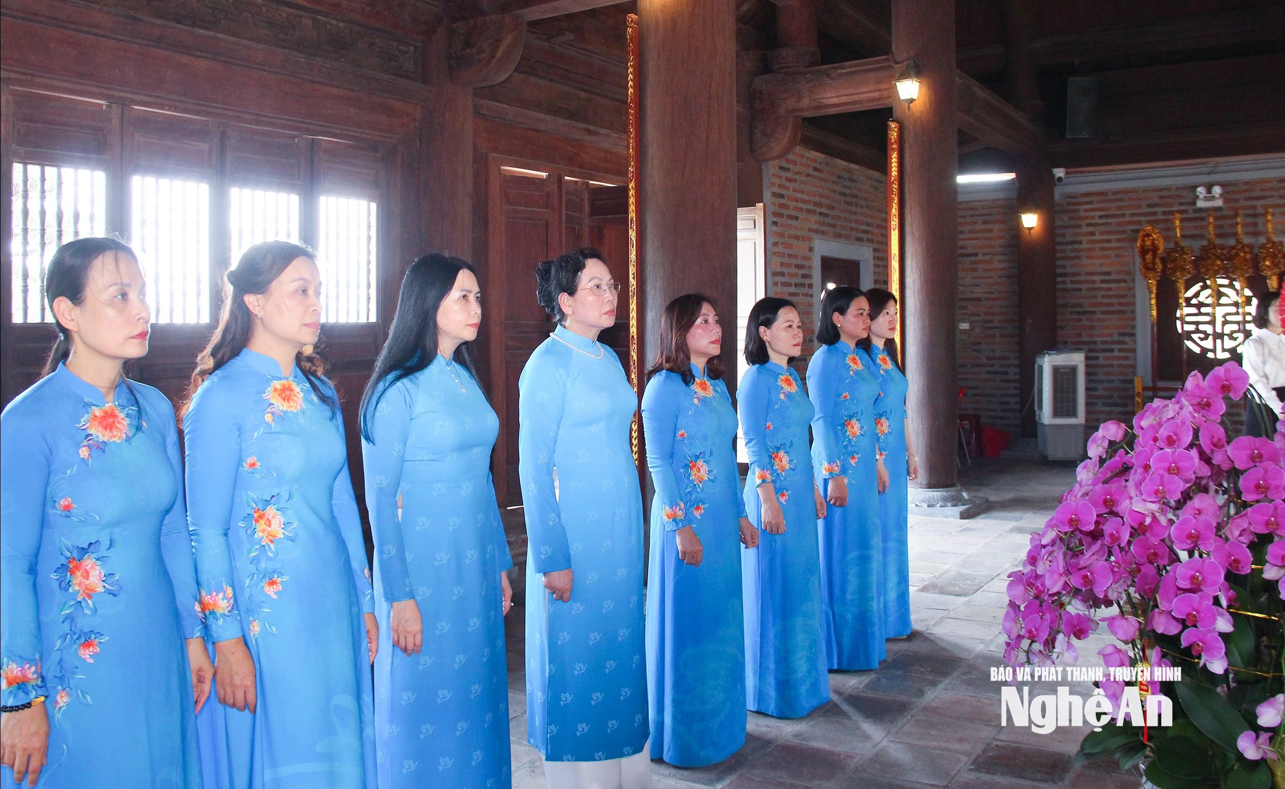 Đoàn công tác của Trung ương Hội LHPN Việt Nam và tỉnh Nghệ An làm lễ tưởng niệm tại Đền Chung Sơn. Ảnh: Mai Hoa