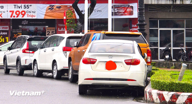 Nhiều chủ phương tiện di chuyển xe ô tô đậu đỗ ngay trong khu vực vòng xuyến giao thông đường Điện Biên Phủ, Đà Nẵng. (Ảnh: Thanh Phong/Vietnam+)